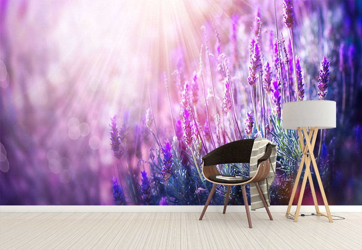 Lavender Sunshine Forest Plant Purple Wallpaper Mural,Self-Adhesive Peel And Stick 3D Wall Decal,Bedroom Australian Company Wall Decor