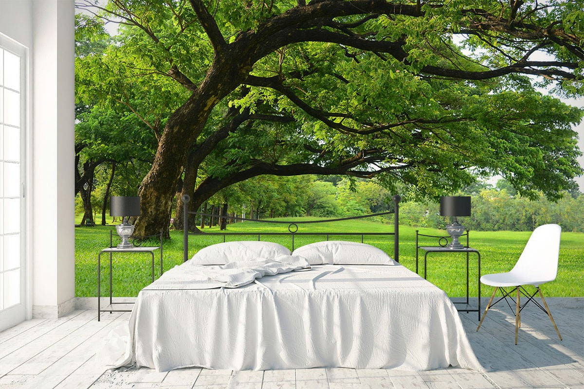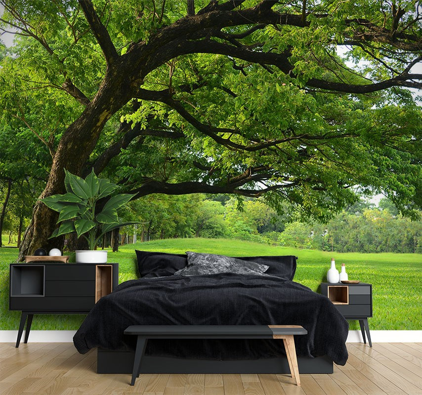 Lawn Trunk Nature Grass Green Wallpaper Mural,Self-Adhesive Peel And Stick 3D Wall Art,Designer Australian Company Wall Decor