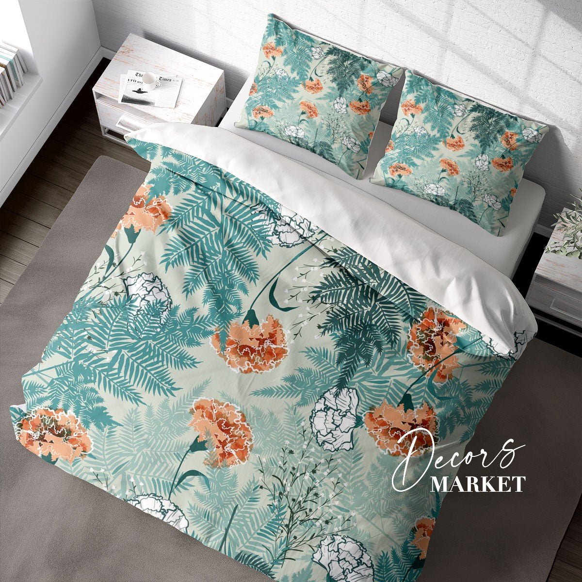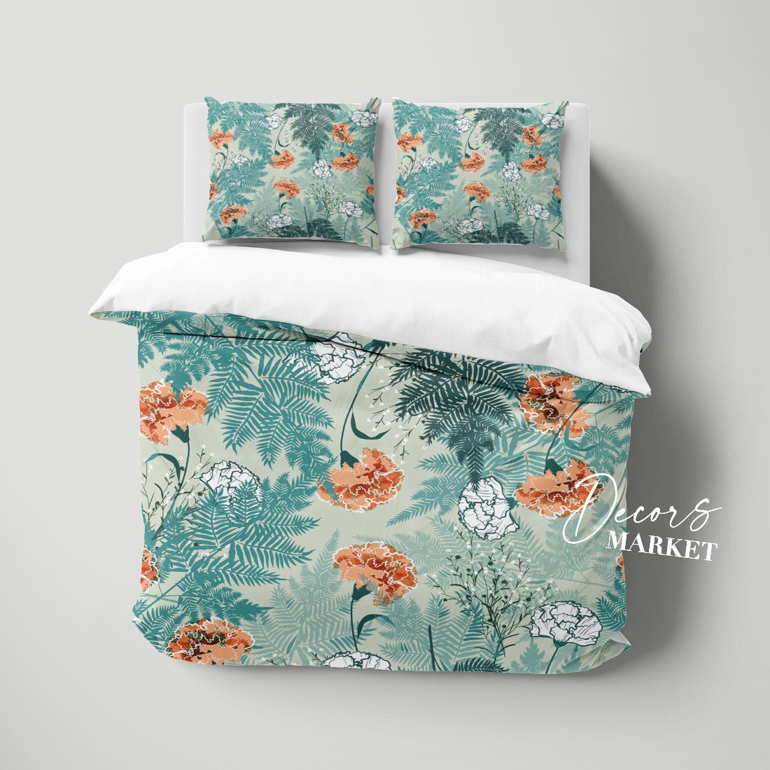 Leaf Garden Rose Duvet Cover Set w Pillowcases, Green Floral Patterns 3D Quilt Cover, 3pc Single Double Queen King Size Doona Cover