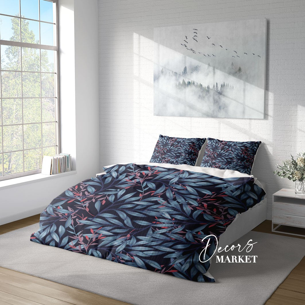 Leafy Branches Duvet Cover Set w Pillowcases, Blue Floral Leaves 3D Quilt Cover, 3pc Single Double Queen King Size Doona Cover