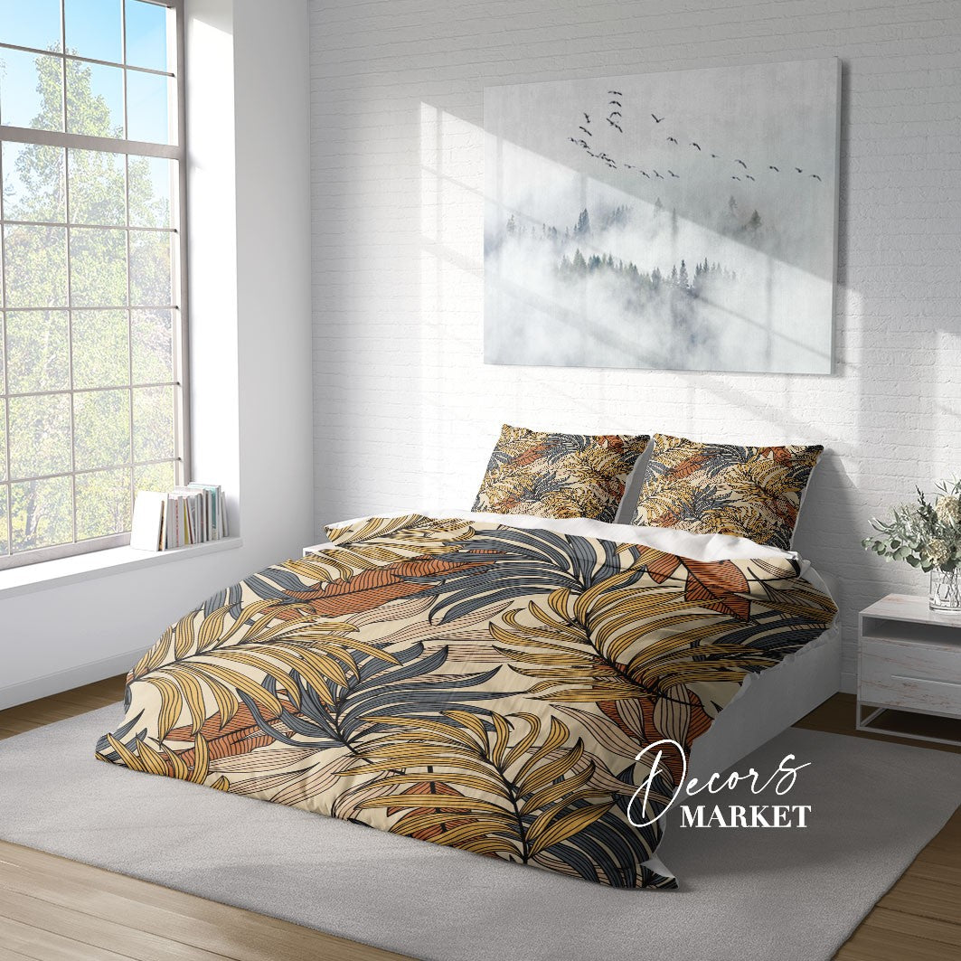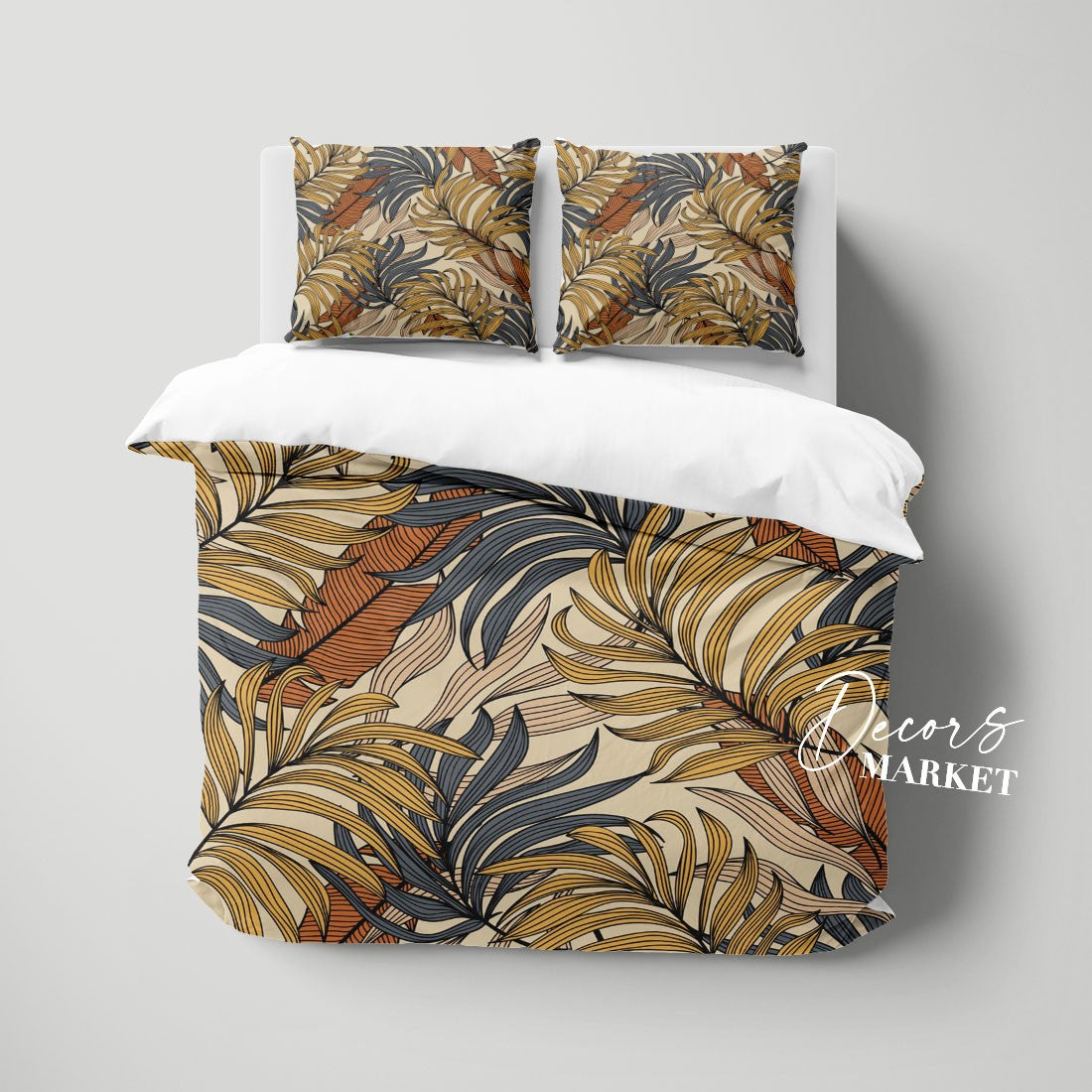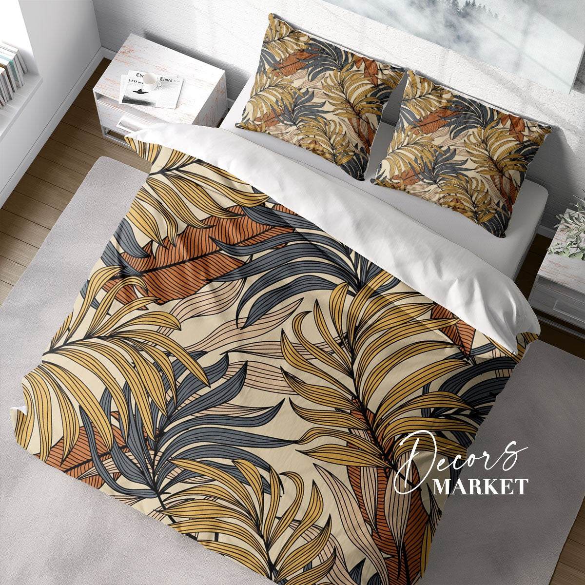 Leafy Branches Duvet Cover Set w Pillowcases, Brown Yellow Floral Leaves 3D Quilt Cover, 3pc Single Double Queen King Size Doona Cover