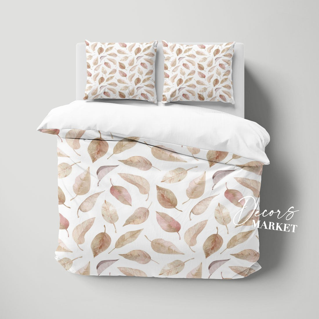 Leafy Light Brown Leaves Duvet Cover Set w Pillowcases, Brown Floral Leaves 3D Quilt Cover, 3pc Single Double Queen King Size Doona Cover