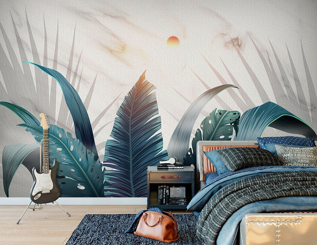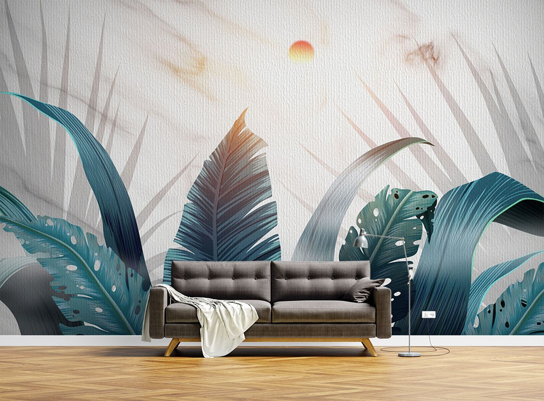 Leaves And Sun Floral Green Wallpaper Mural,Self-Adhesive Peel And Stick 3D Wall Decal,Australian Company Designer Wall Decor