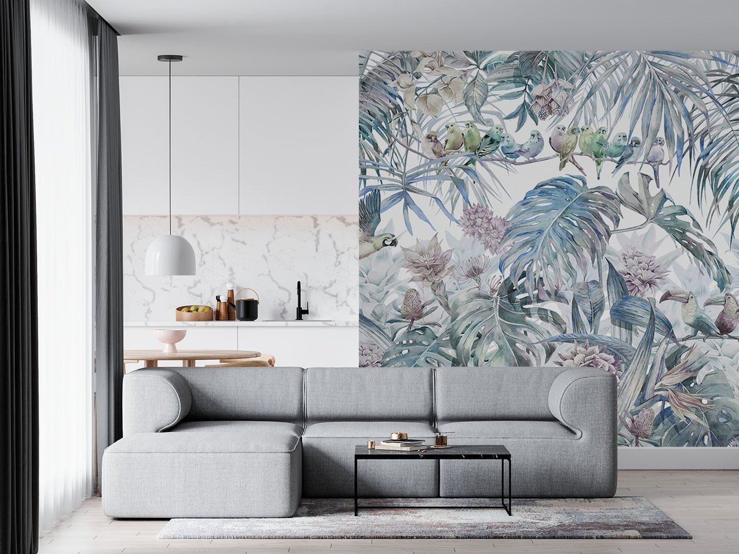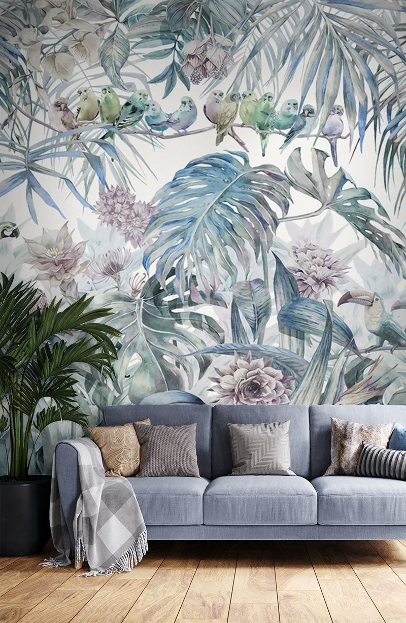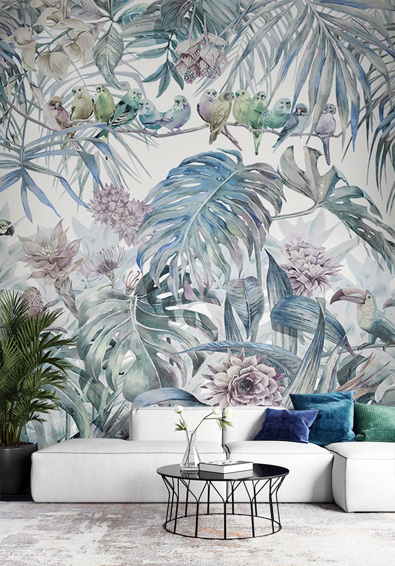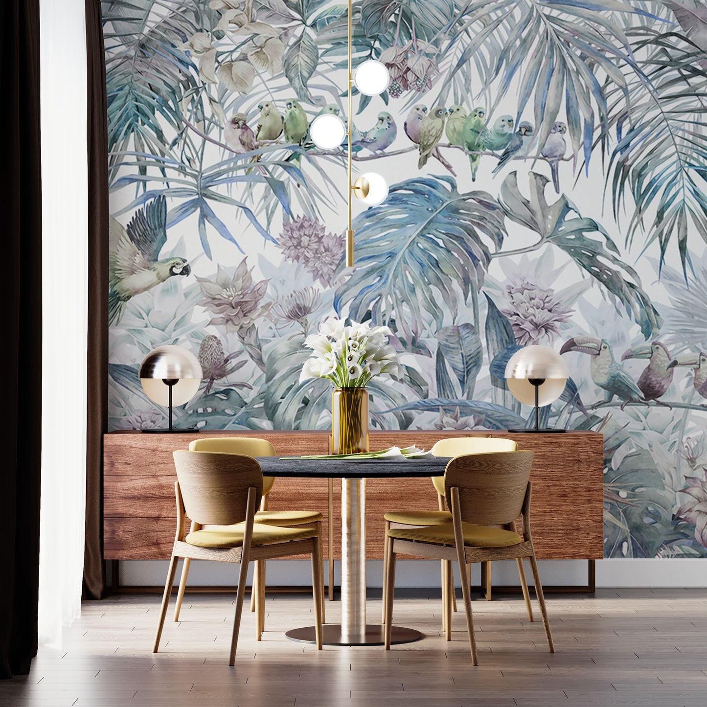 Leaves Birds Forest Jungle Bright Wallpaper Mural