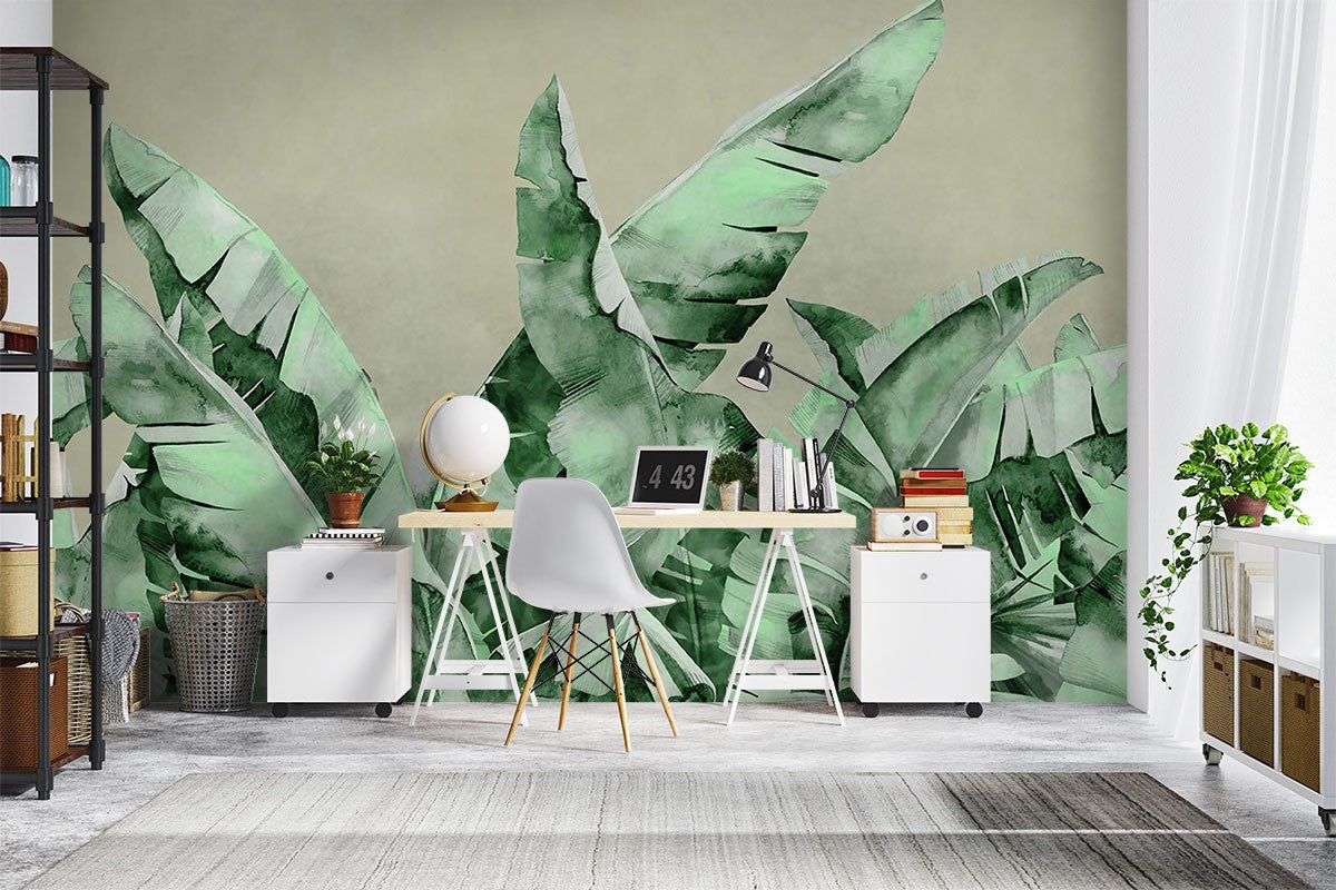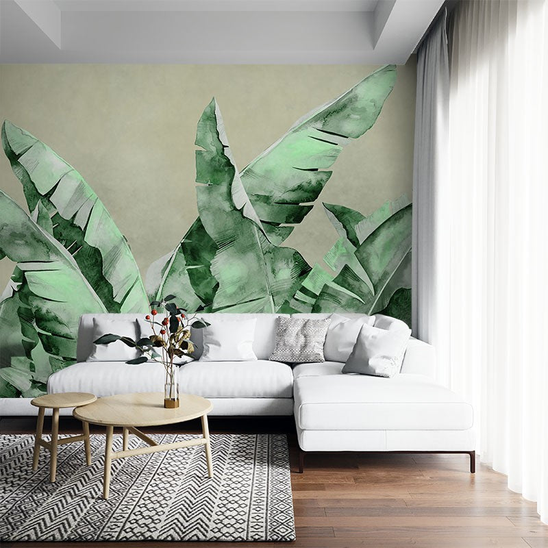 Leaves Floral Green Wallpaper Mural,Self-Adhesive Peel And Stick 3D Wall Mural,Bedroom Removable Wall Decor