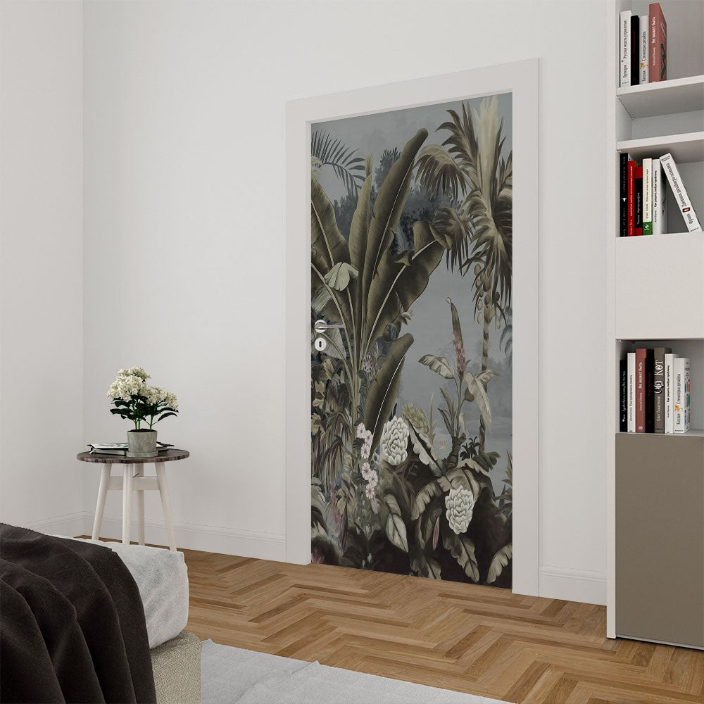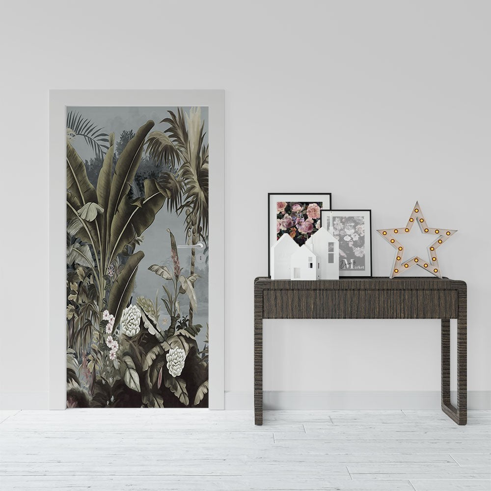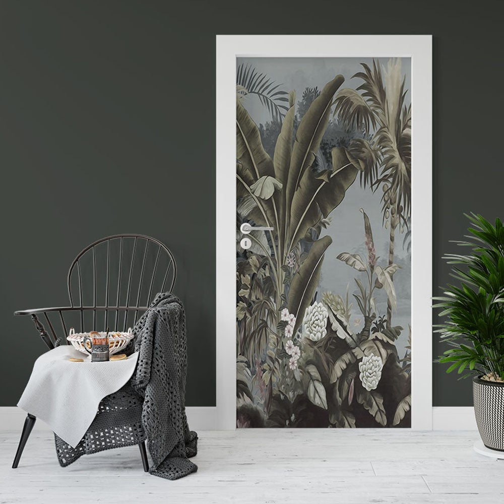 Leaves Floral Leaves Door Wrap, Customized Mural For Door, Door Mural Sticker, Peel And Stick Door Cover, Removable Door Decal
