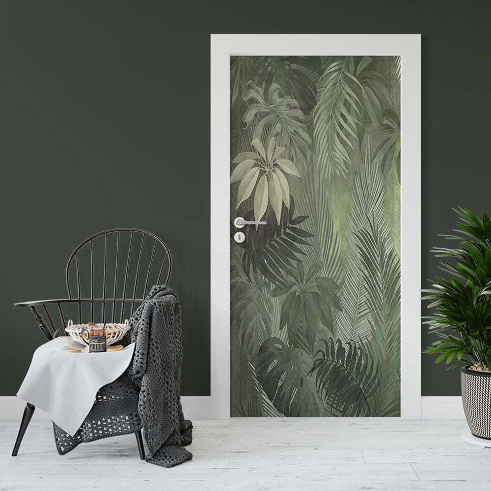 Leaves Floral Leaves Door Wrap, Customized Mural For Door, Door Mural Sticker, Peel And Stick Door Cover, Removable Door Decal