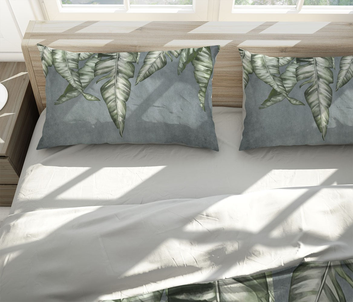 Leaves Floral Green 3D Duvet Cover Set W Pillow Cover, Single Double Queen King Size, Printed Cotton Quilt Doona Cover 3 Pcs