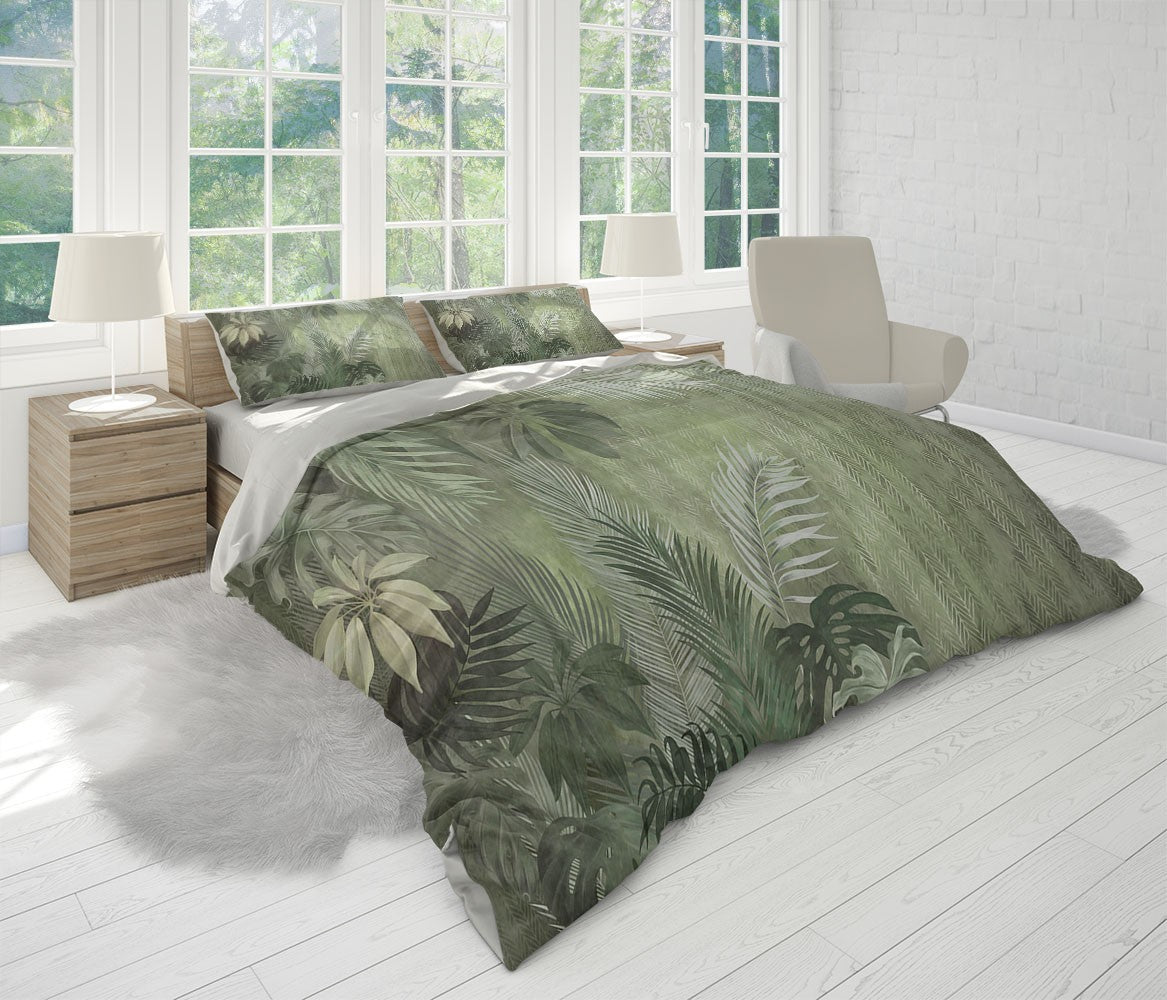 Leaves Floral Green 3D Duvet Cover Set W Pillow Cover, Single Double Queen King Size, Printed Cotton Quilt Doona Cover 3 Pcs