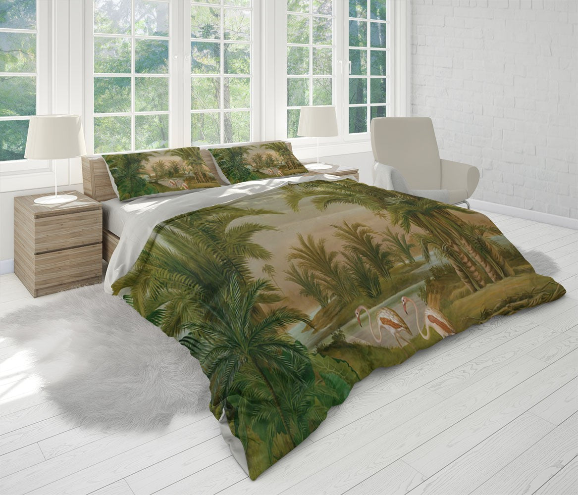 Leaves Floral Green 3D Duvet Cover Set W Pillow Cover, Single Double Queen King Size, Printed Cotton Quilt Doona Cover 3 Pcs
