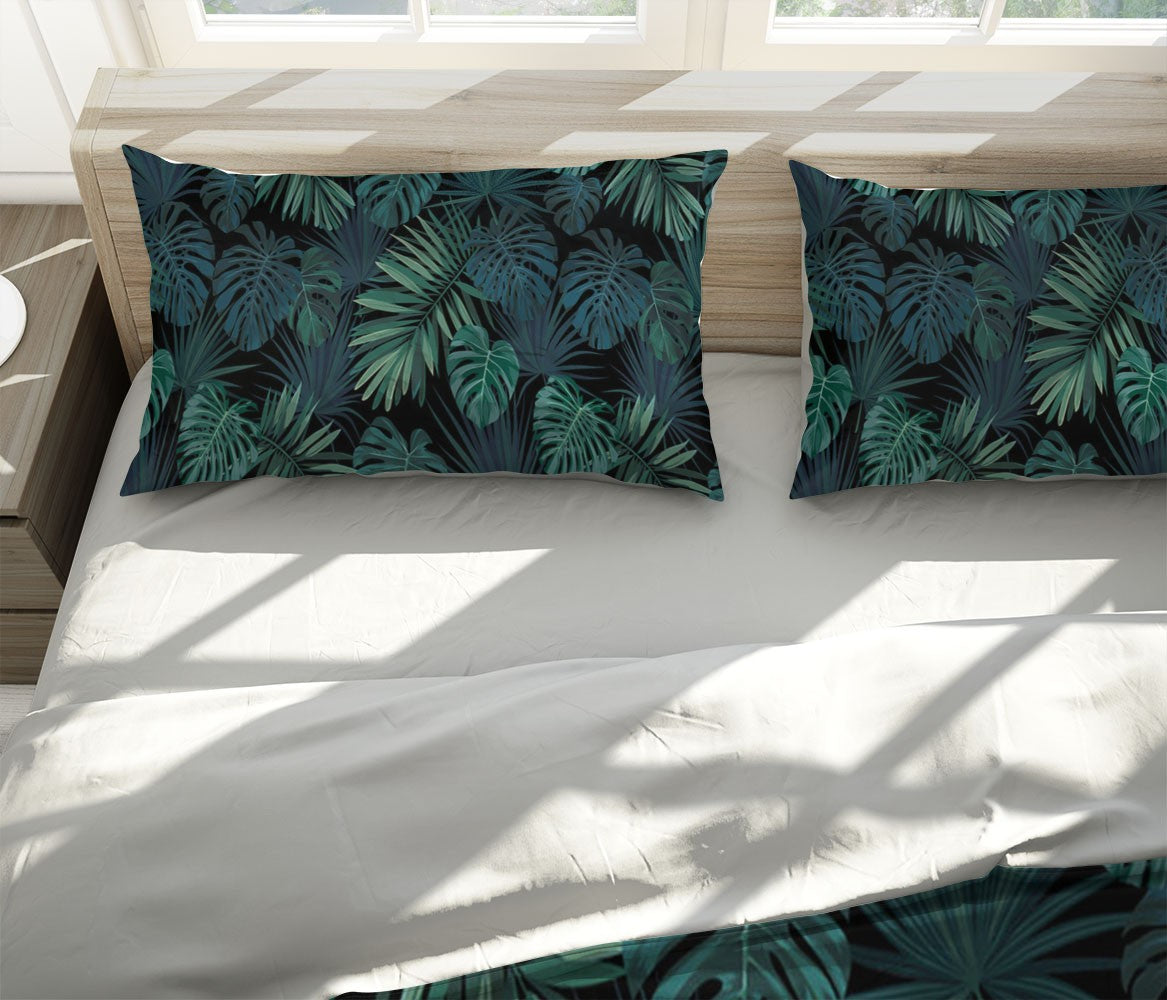Leaves Floral Green 3D Duvet Cover Set W Pillow Cover, Single Double Queen King Size, Printed Cotton Quilt Doona Cover 3 Pcs