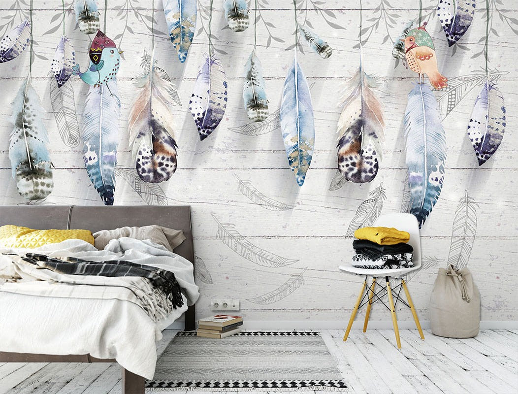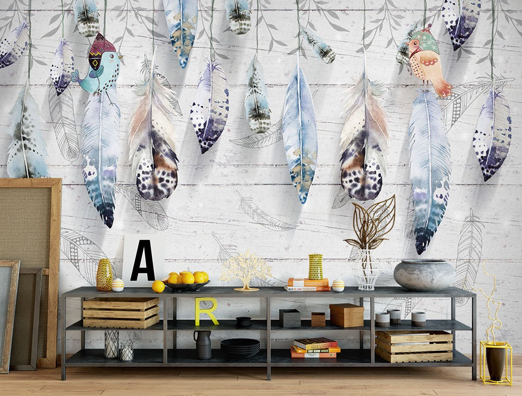 Leaves Floral Multicolour Wallpaper Mural,Self-Adhesive Peel And Stick 3D Wall Decal,Australian Company Bedroom Wall Decor