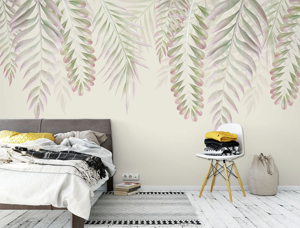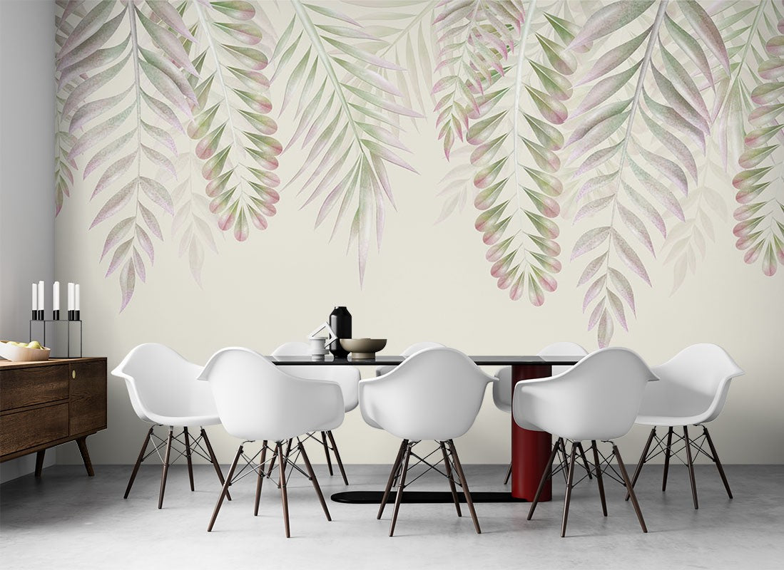 Leaves Floral Patterns Green Wallpaper Mural,Self-Adhesive Peel And Stick 3D Wall Decal,Australian Company Wall Decor