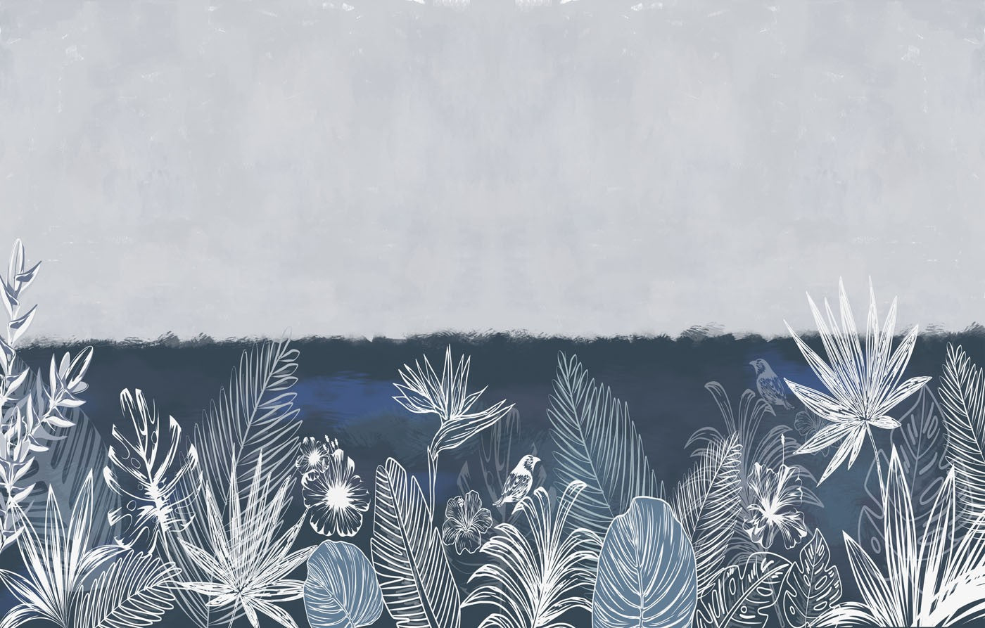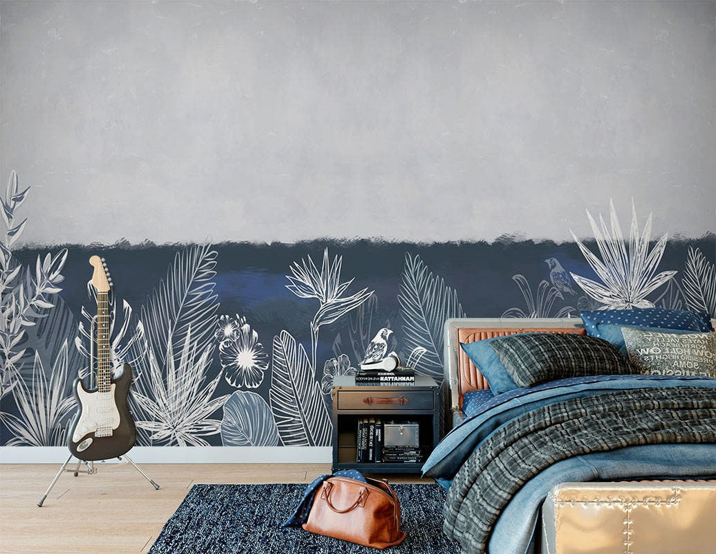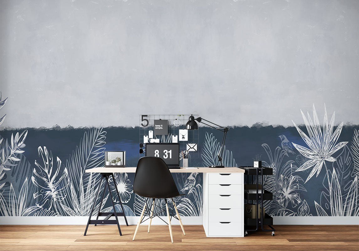 Leaves Horizon Floral Blue Wallpaper Mural,Self-Adhesive Peel And Stick 3D Wall Decor,Designer Removable Wall Decor
