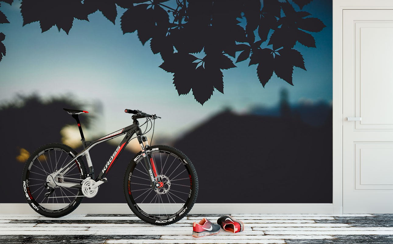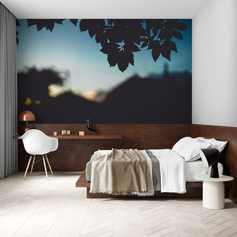 Leaves Houses Nature Space Black Wallpaper Mural,Self-Adhesive Peel And Stick 3D Wall Decor,Removable Australian Company Wall Decor