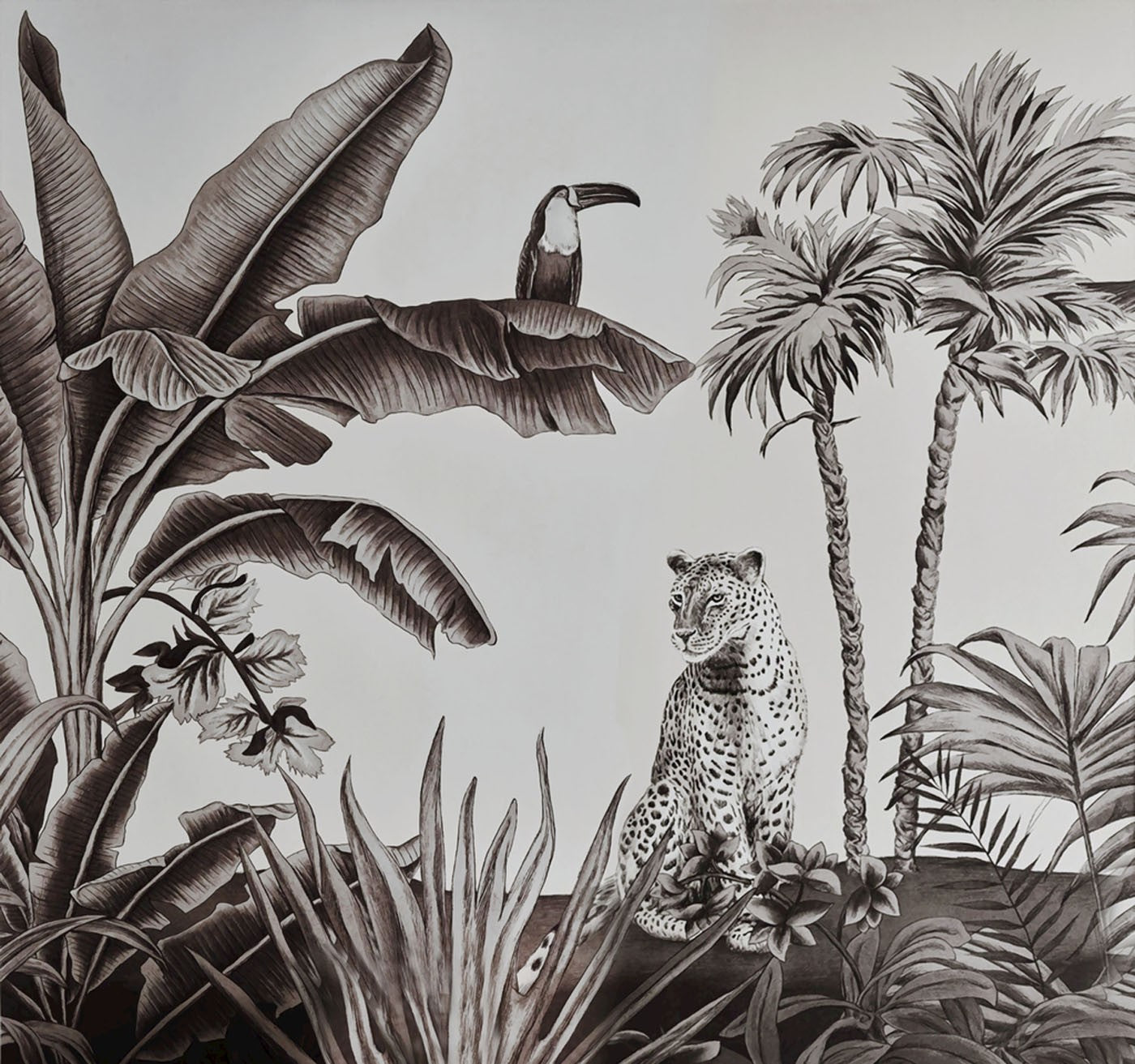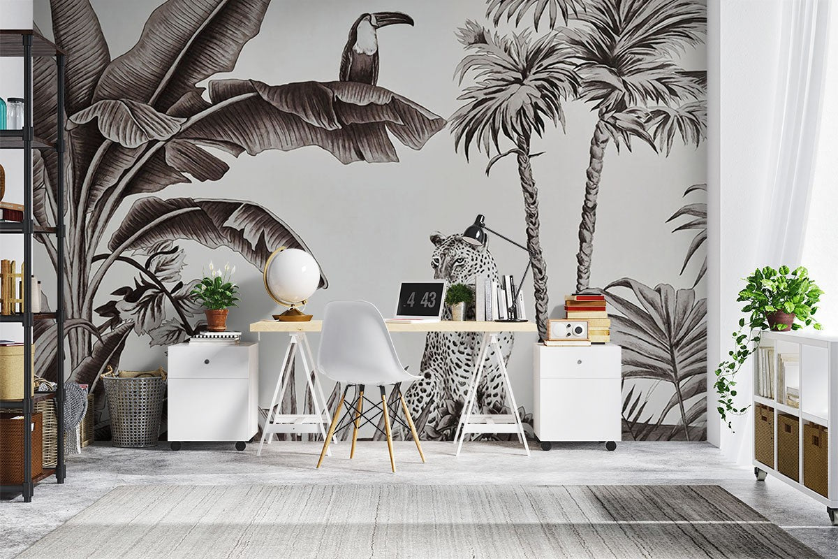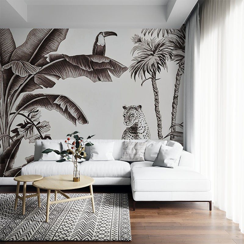 Leaves Jaguar Floral Black&White Wallpaper Mural,Self-Adhesive Peel And Stick 3D Wall Art,Australian Company Designer Wall Decor