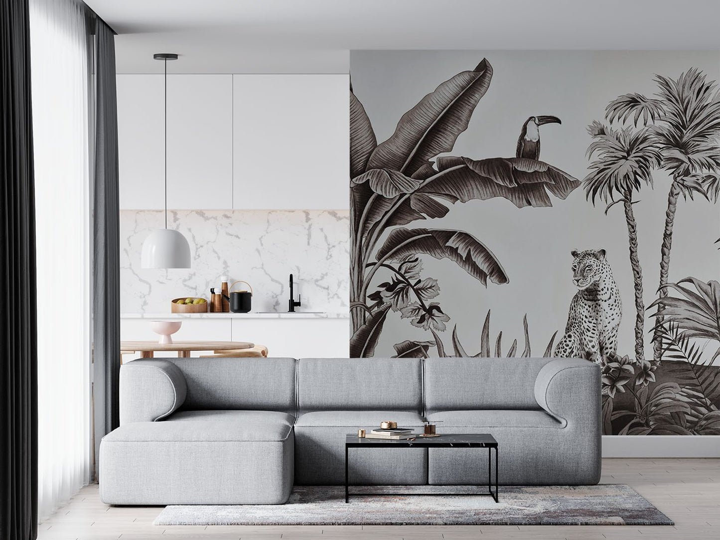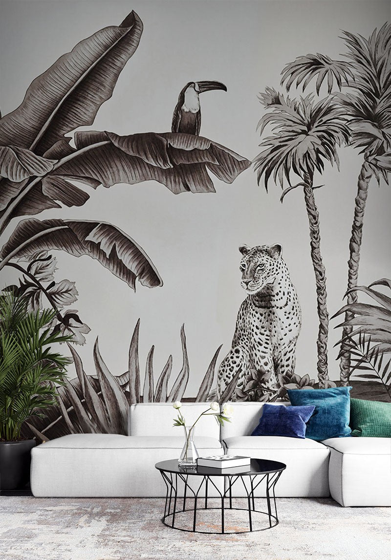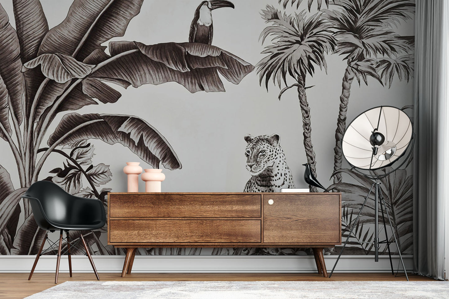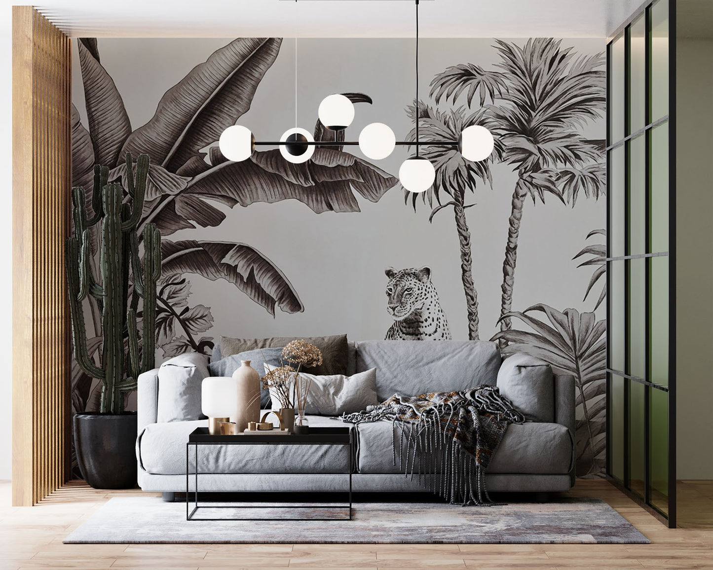 Leaves Jaguar Floral Leaves Black And White Wallpaper Mural