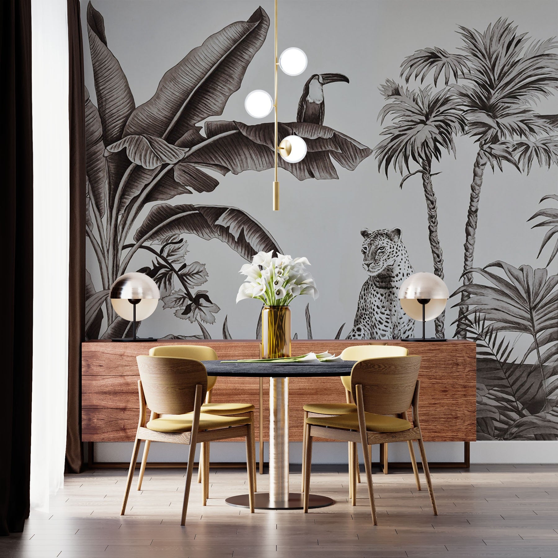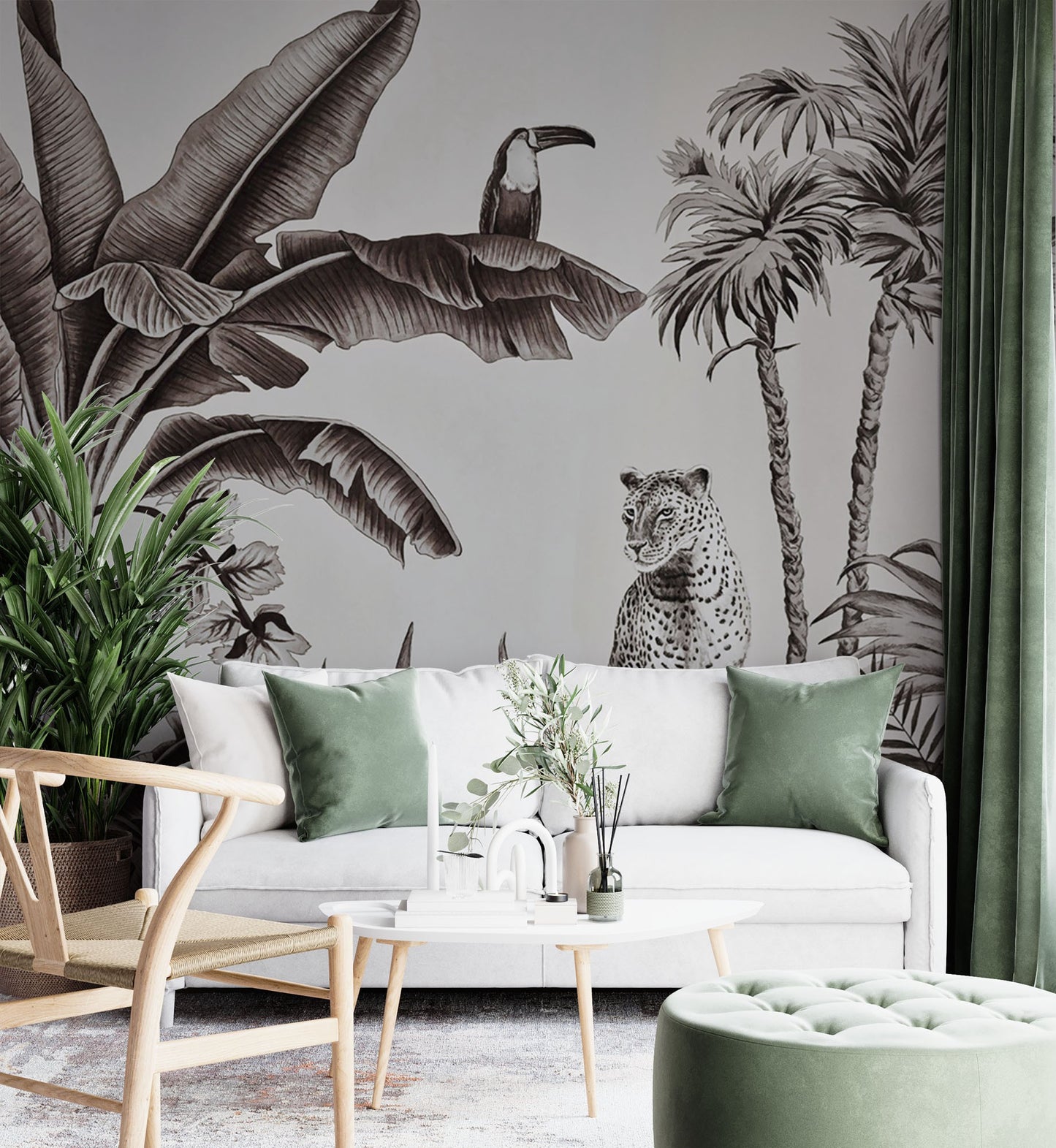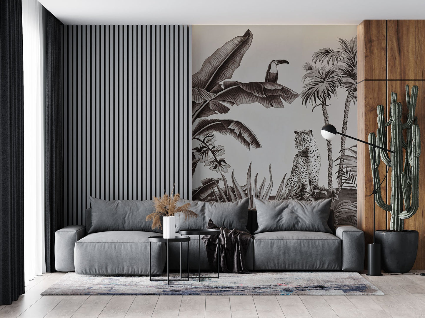Leaves Jaguar Floral Leaves Black And White Wallpaper Mural