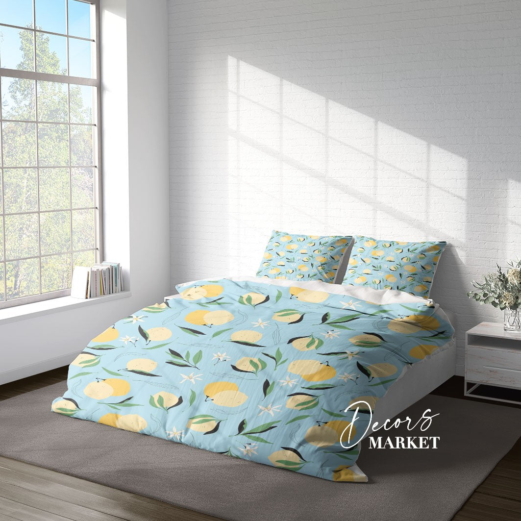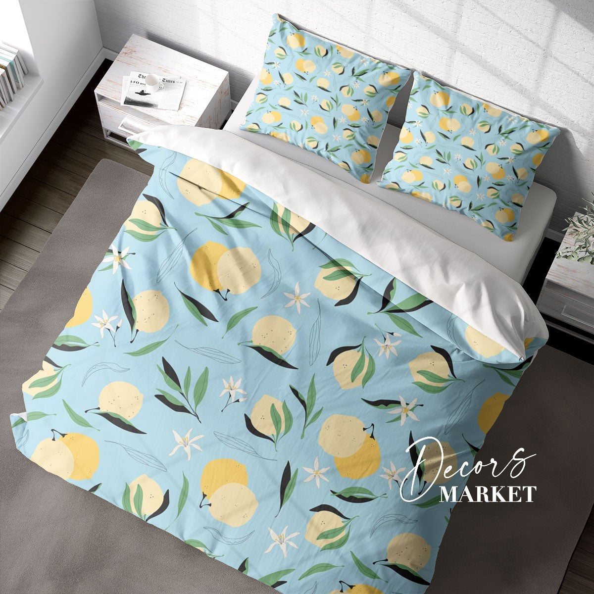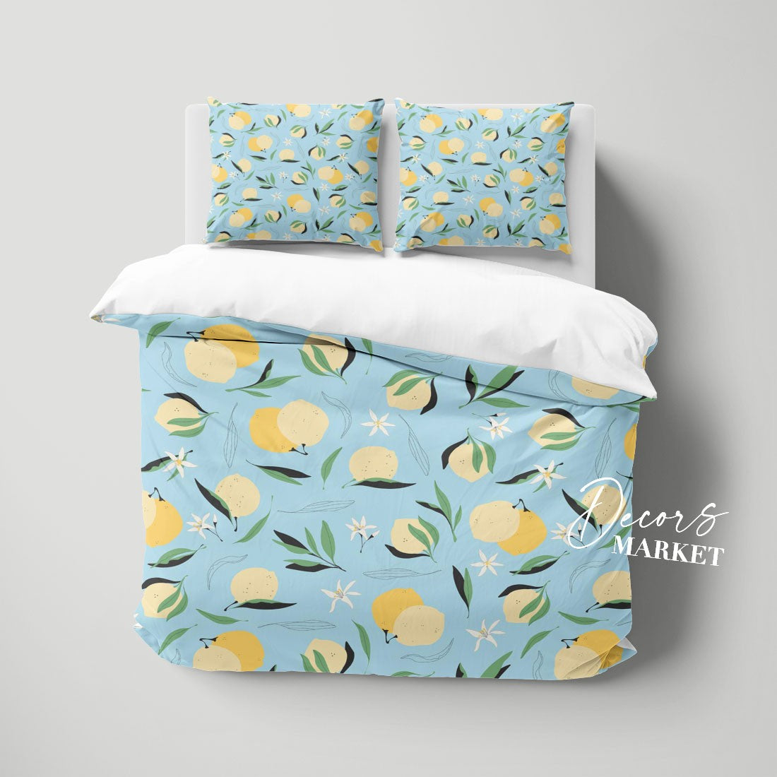 Lemons Leaves Duvet Cover Set w Pillowcases, Yellow Floral Patterns 3D Quilt Cover, 3pc Single Double Queen King Size Doona Cover