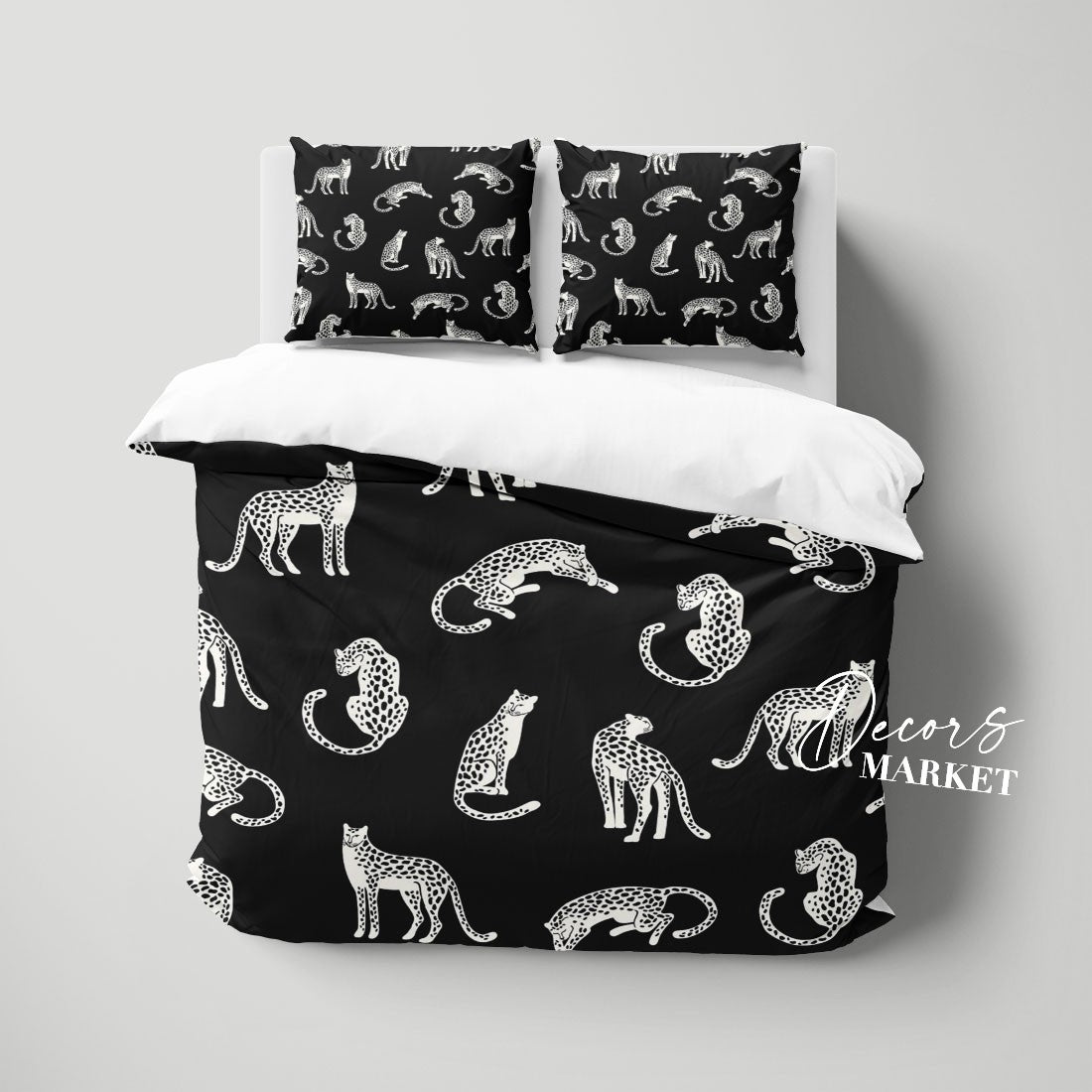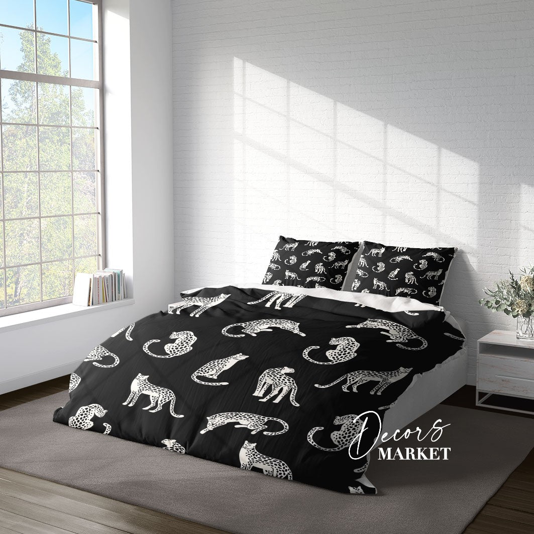 Leopard Spot Duvet Cover Set w Pillowcases, Black&White Art Fantasy 3D Quilt Cover, 3pc Single Double Queen King Size Doona Cover