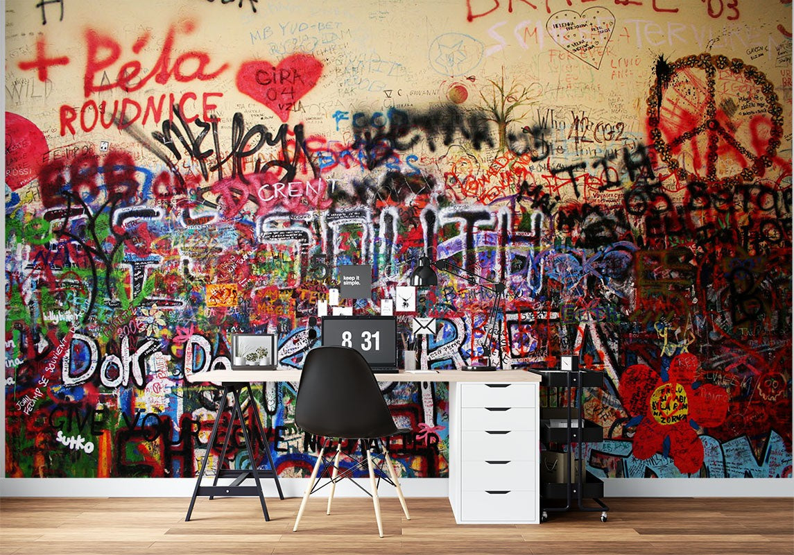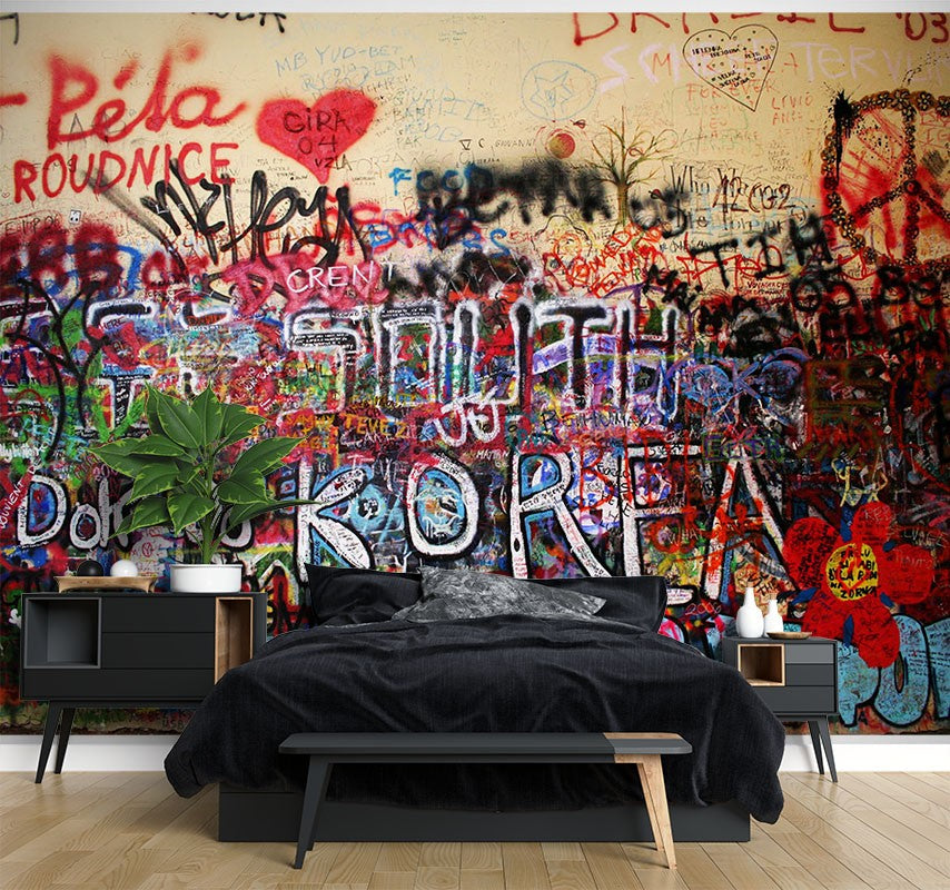 Letters Graffiti Multicolour Wallpaper Mural,Self-Adhesive Peel And Stick 3D Wall Mural,Bedroom Australian Company Wall Decor