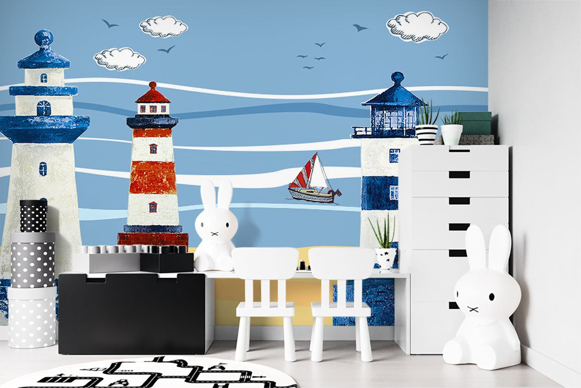 Lighthouse Kids Fantasy Blue Wallpaper Mural,Self-Adhesive Peel And Stick 3D Wall Decor,Bedroom Australian Company Wall Decor