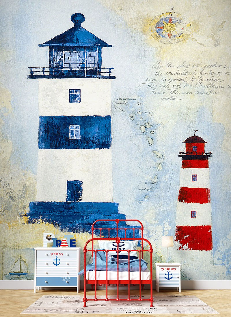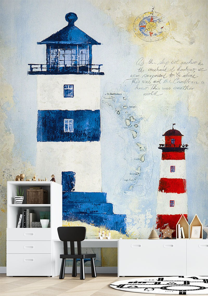 Lighthouse Painting Kids Colorful Bright Wallpaper Mural,Self-Adhesive Peel And Stick 3D Wall Decal,Removable Bedroom Wall Decor