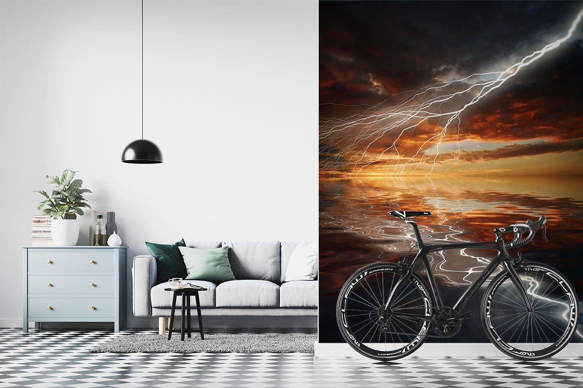 Lightning Sunset Nature Sky Orange Wallpaper Mural,Self-Adhesive Peel And Stick 3D Wall Decor,Bedroom Designer Wall Decor