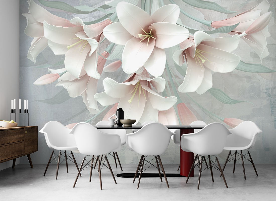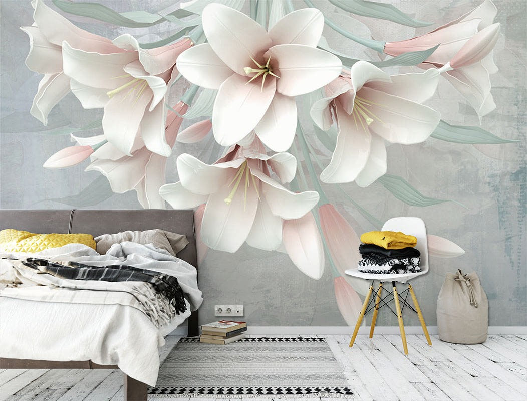 Lily Blossom Floral Dutch Flowers Pink Wallpaper Mural,Self-Adhesive Peel And Stick 3D Wall Mural,Australian Company Bedroom Wall Decor
