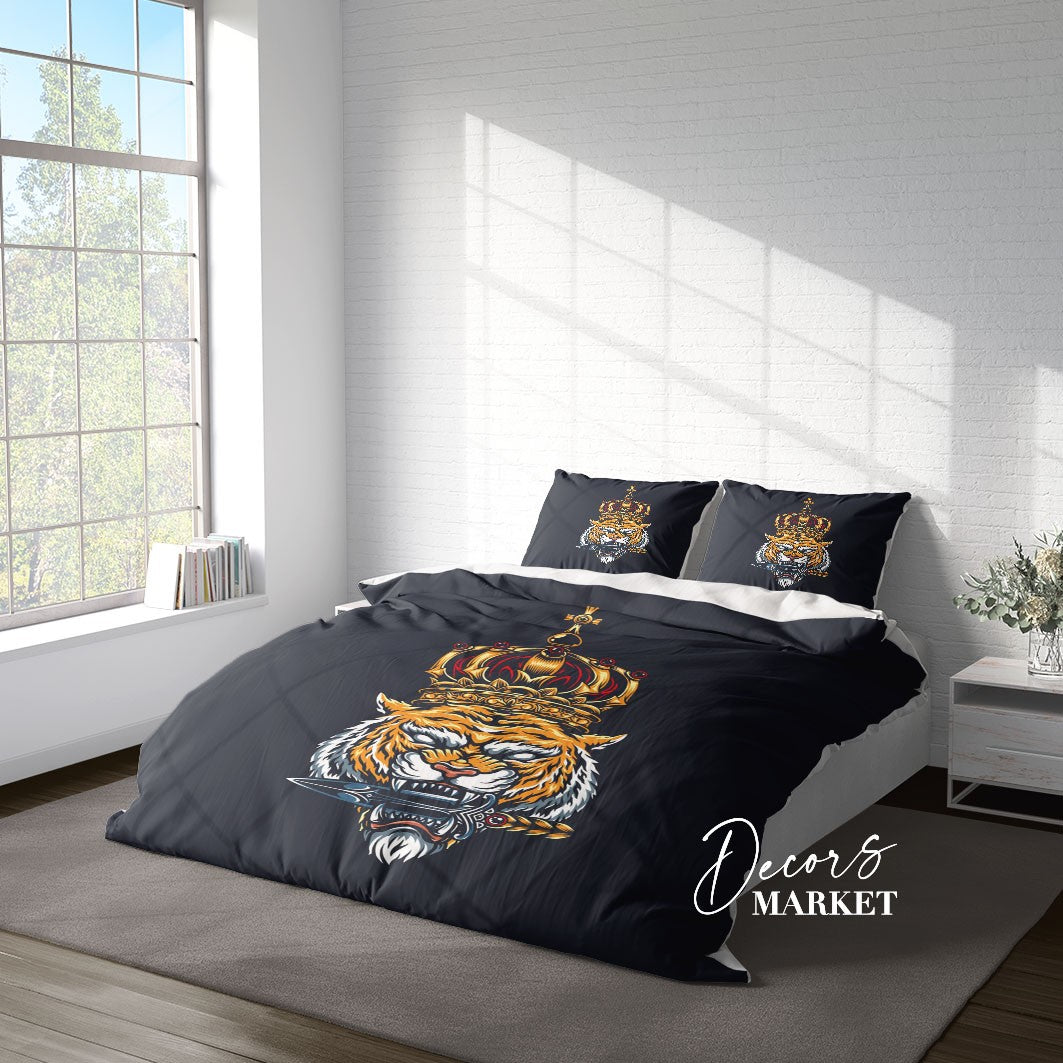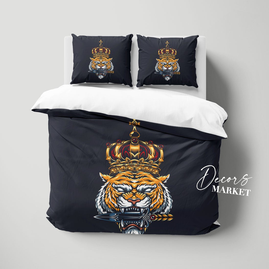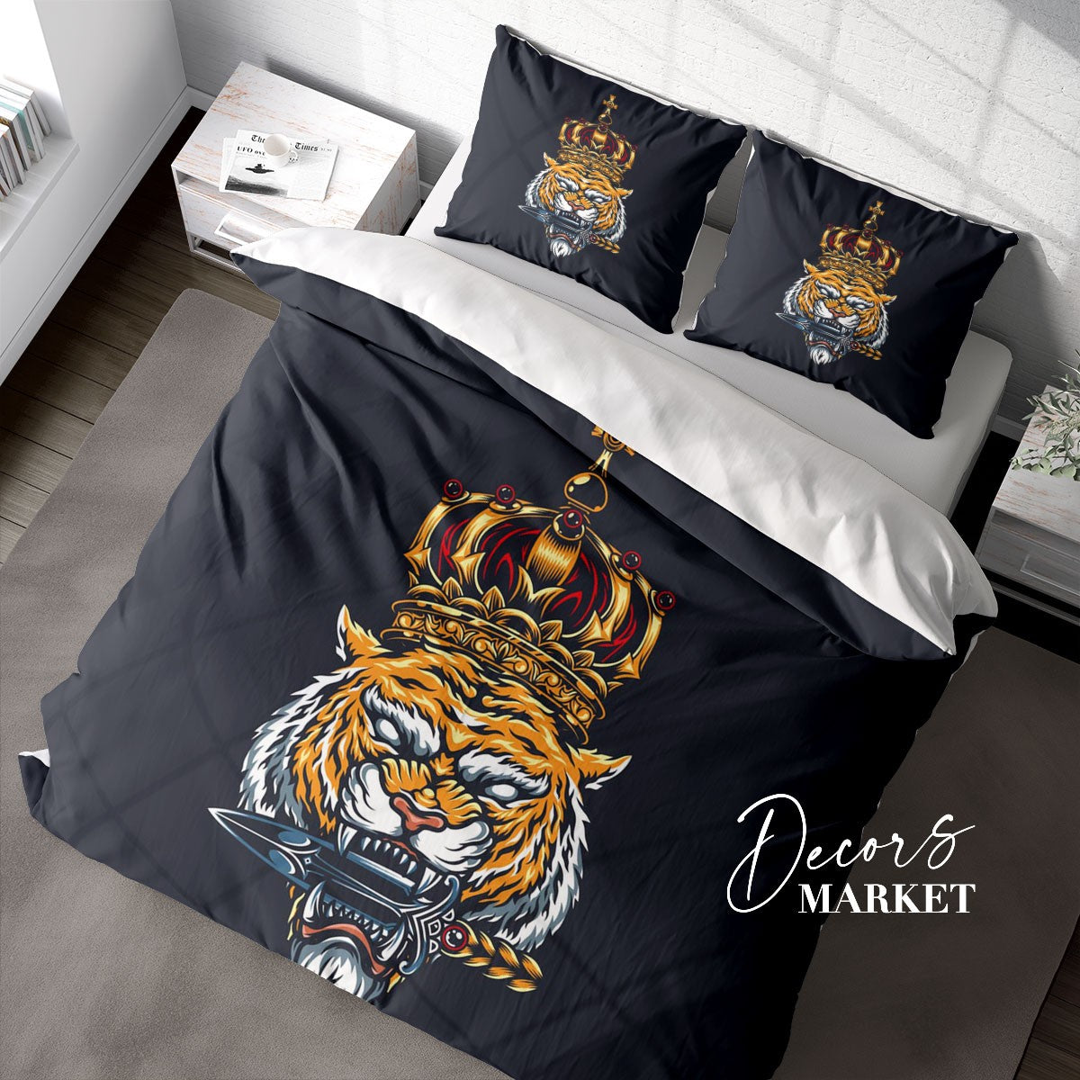 Lion Crown Knife Duvet Cover Set w Pillowcases, Orange Art Fantasy 3D Quilt Cover, 3pc Single Double Queen King Size Doona Cover