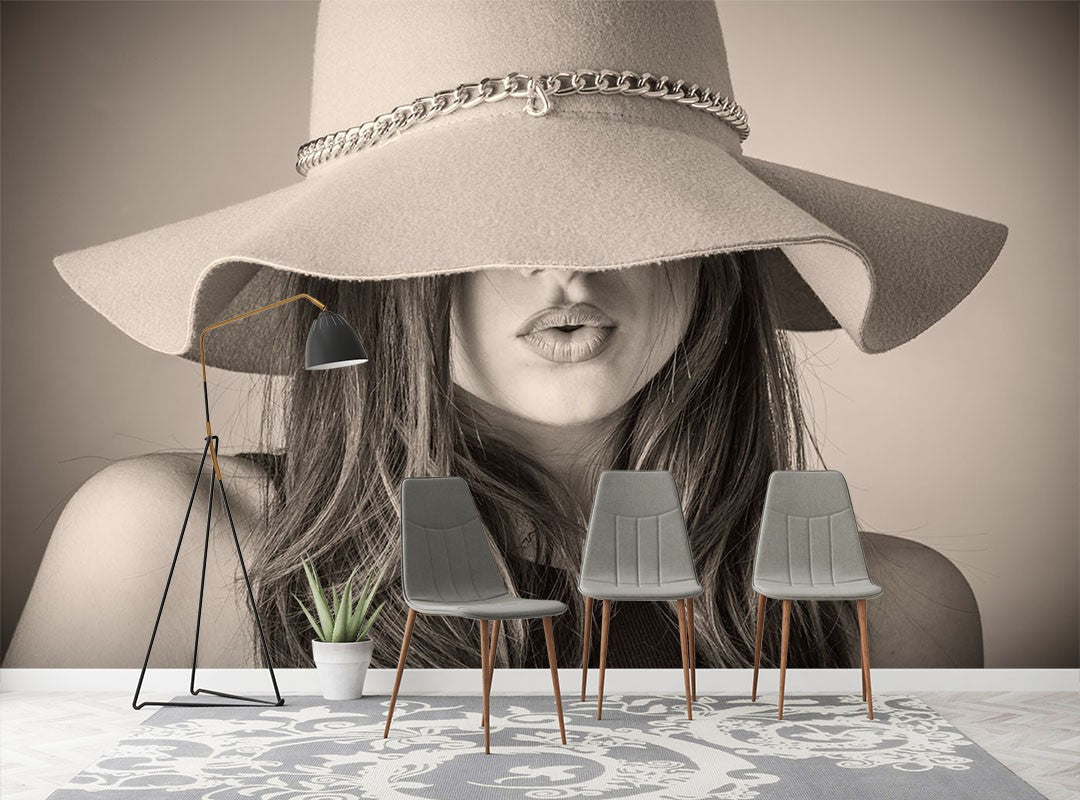 Lips Art Contemporary Creamy Wallpaper Mural,Self-Adhesive Peel And Stick 3D Wall Decor,Removable Bedroom Wall Decor