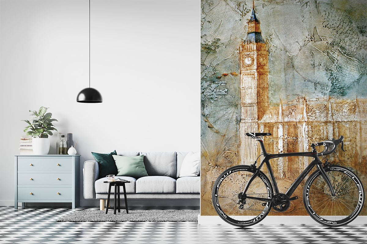 London Landmark Art Contemporary Brown Wallpaper Mural,Self-Adhesive Peel And Stick 3D Wall Paper,Australian Company Bedroom Wall Decor