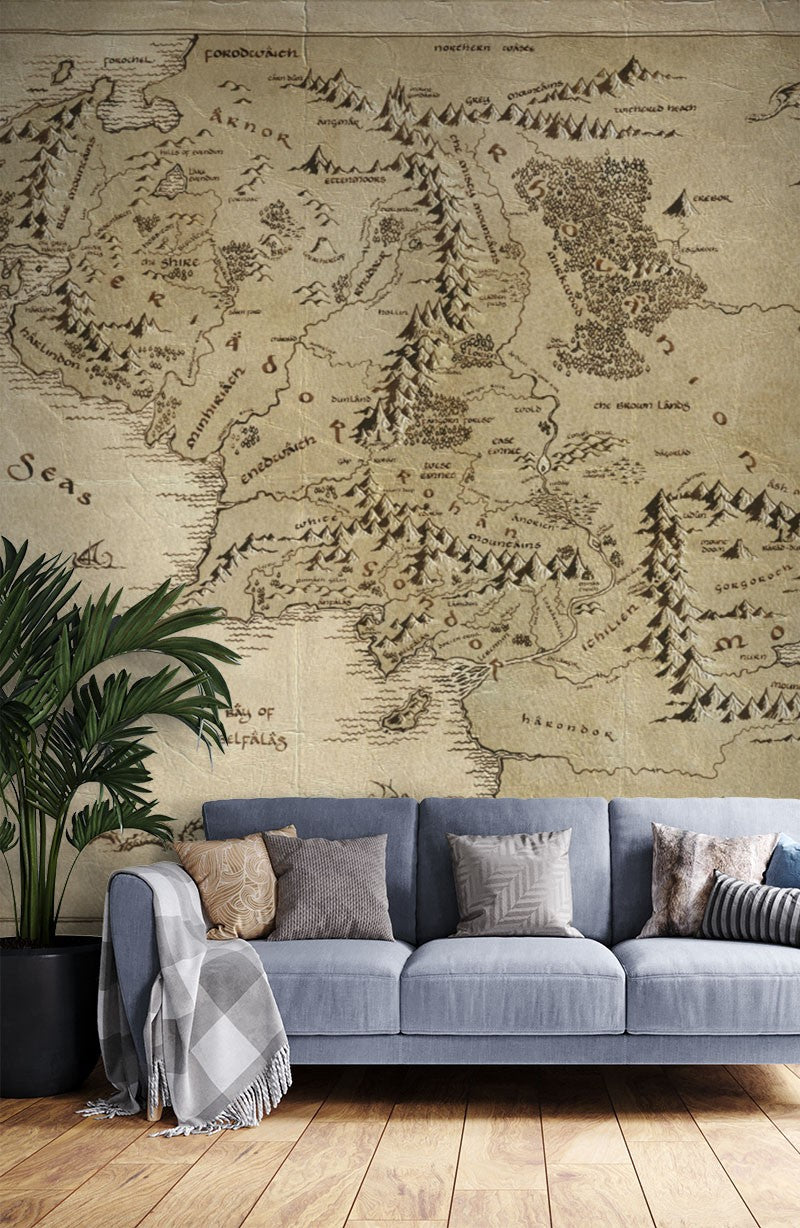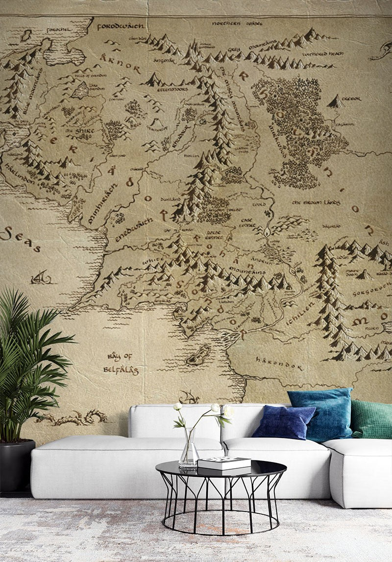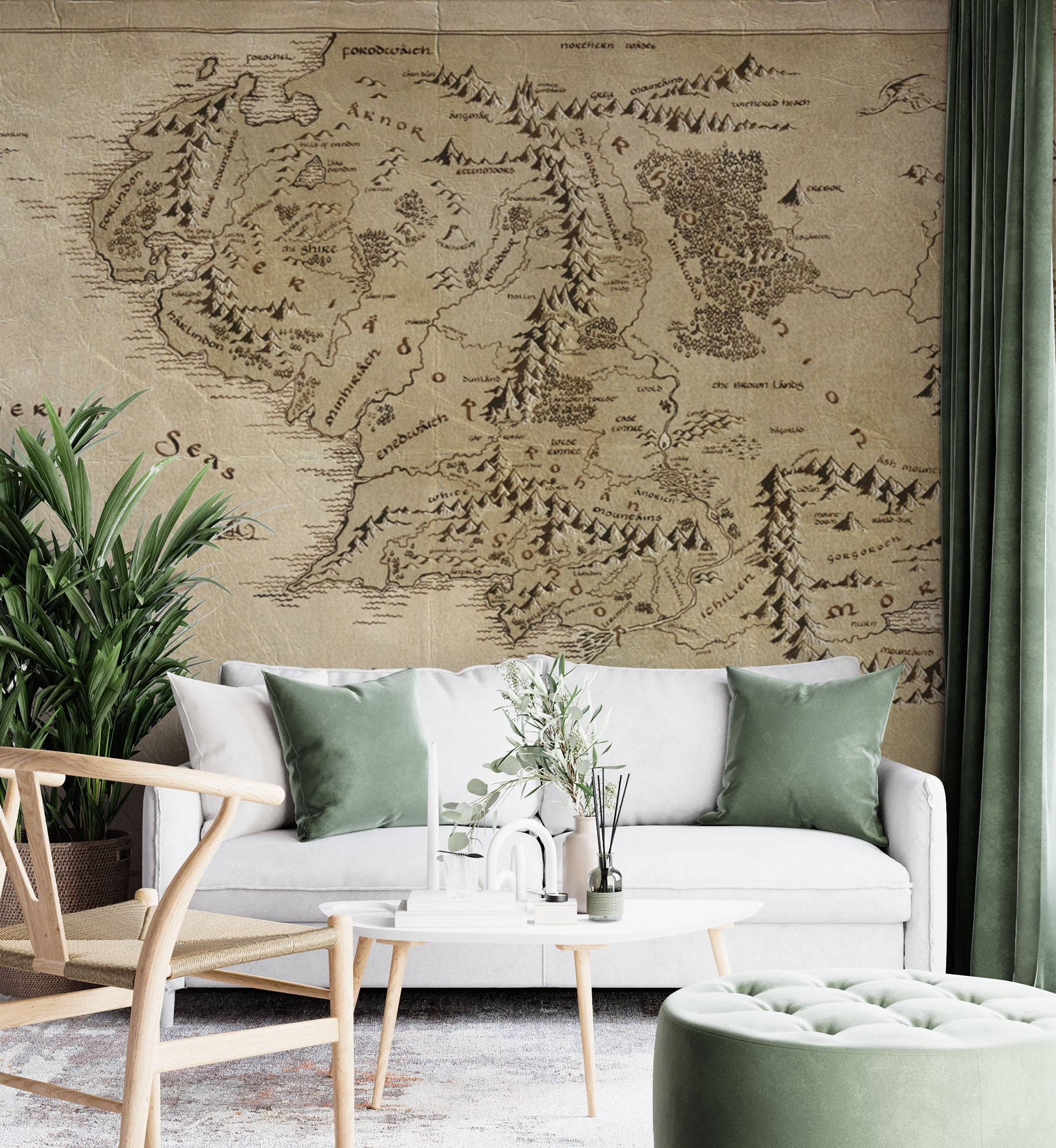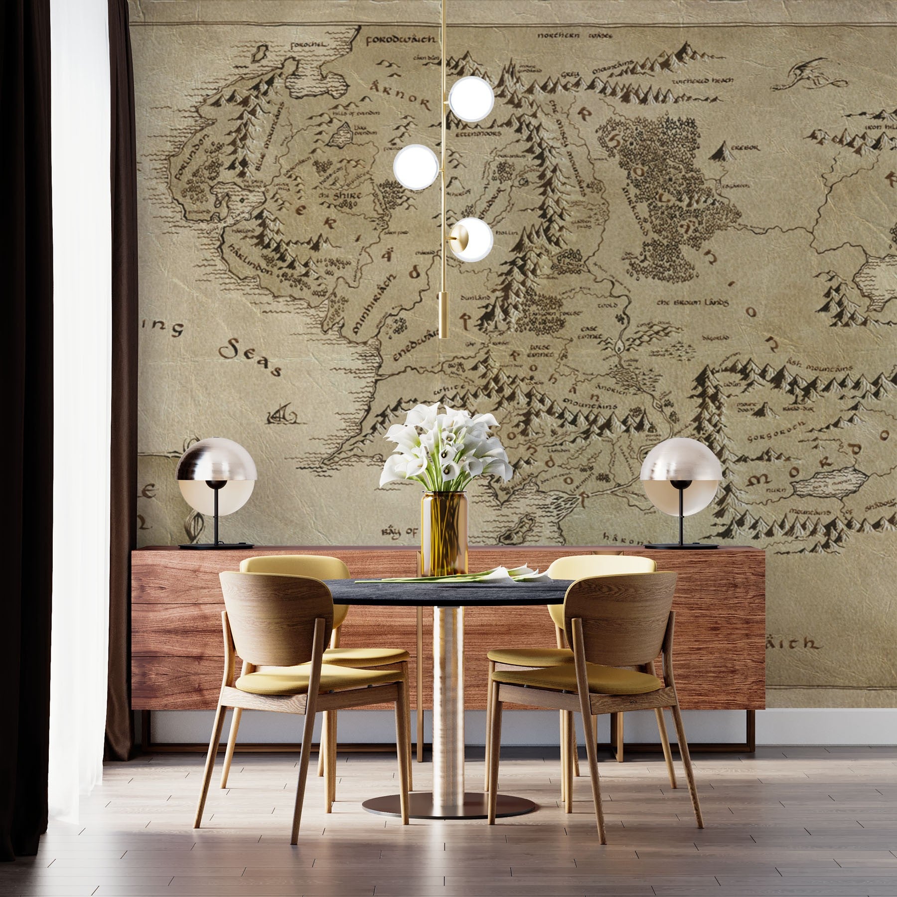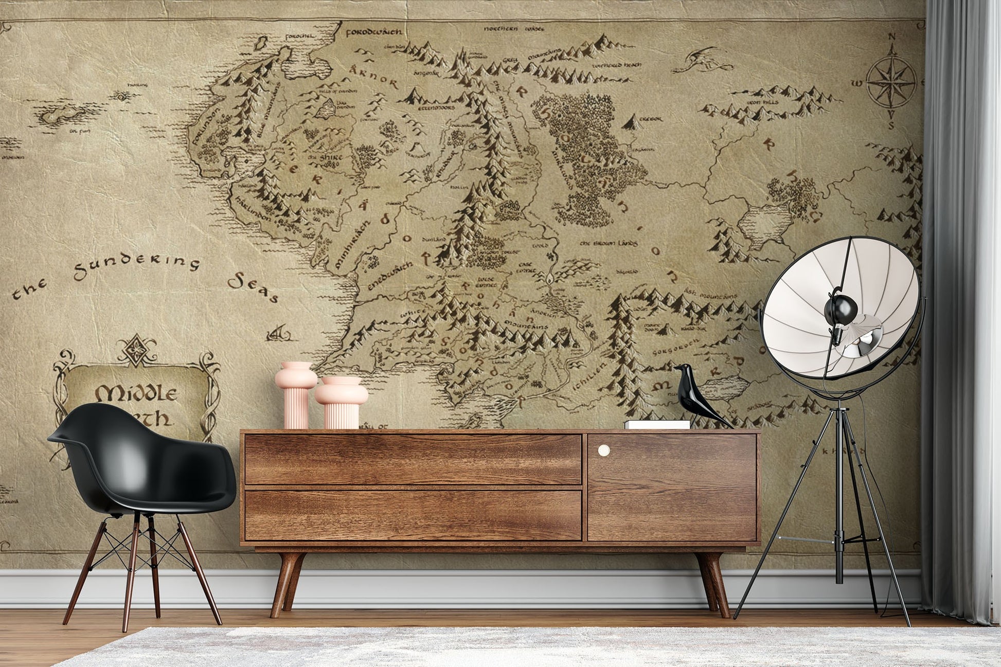 Lotr Map Art Fantasy Brown Wallpaper Mural