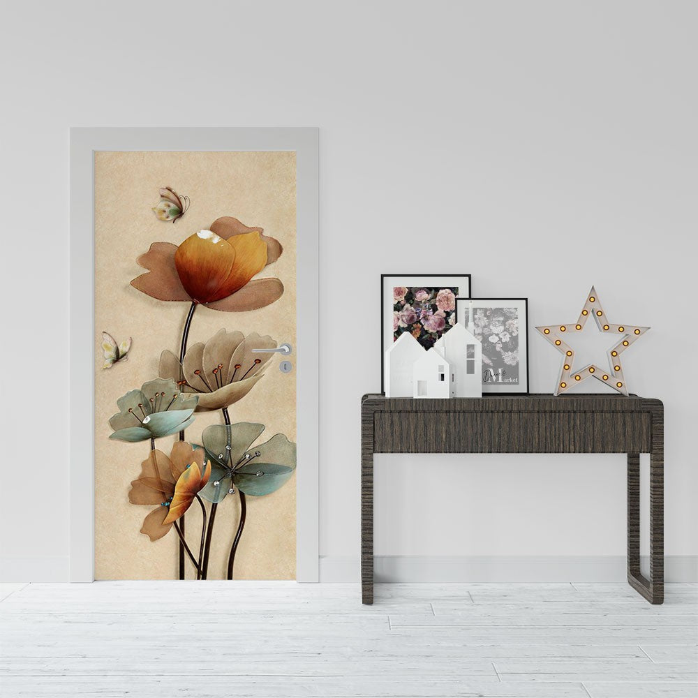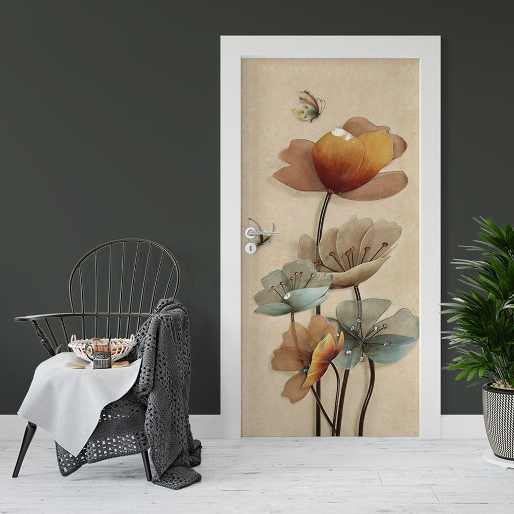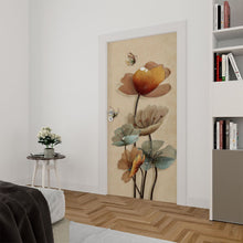 Lotus Butterfly Floral Flowers Door Wrap, Customized Mural For Door, Door Mural Sticker, Peel And Stick Door Cover, Removable Door Decal