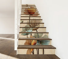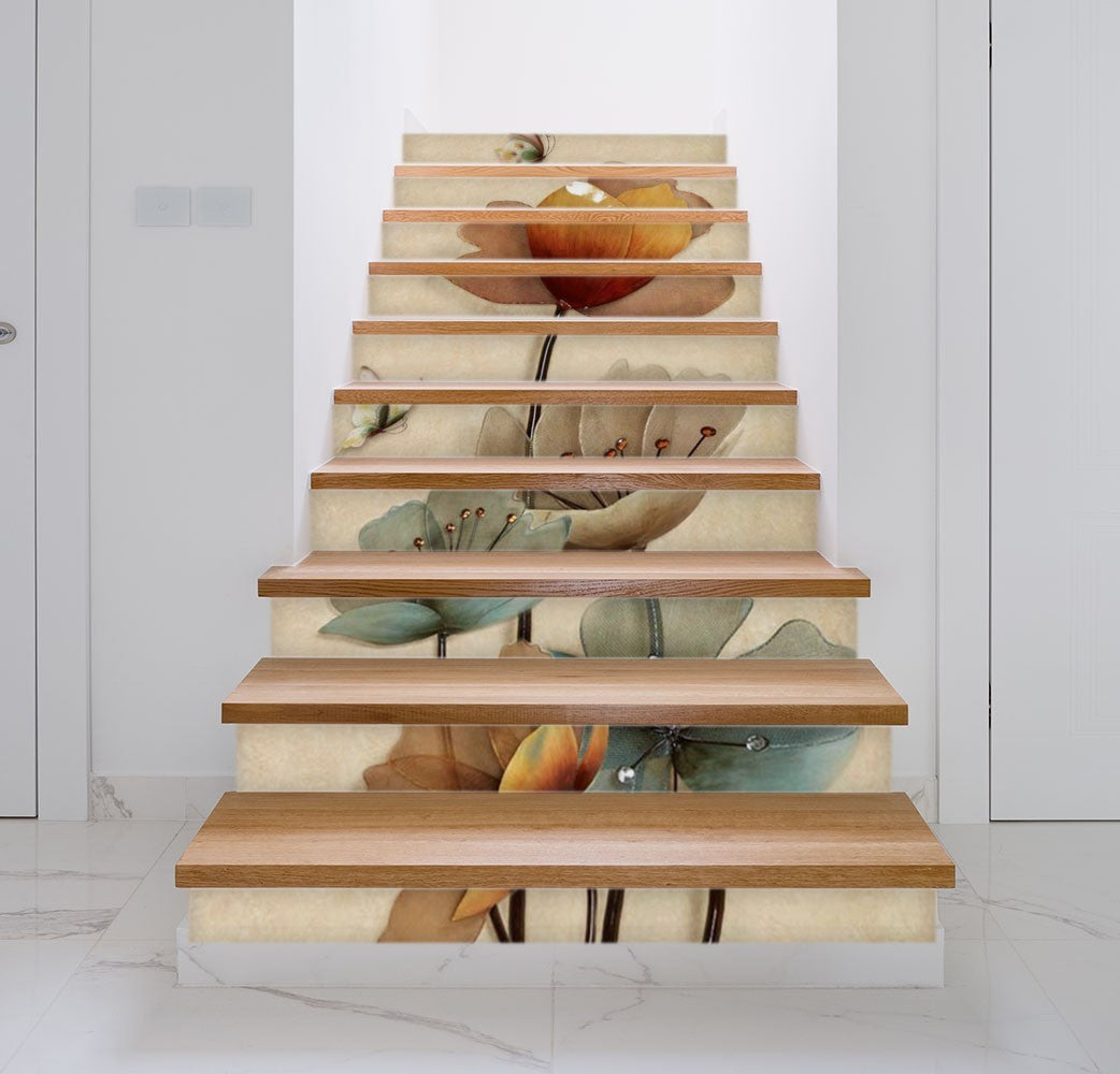 Lotus Butterfly Floral Flowers Bright Stair Riser Decals, Waterproof Removable Staircase Decals, Vinyl Peel And Stick Stairs Decal Stickers