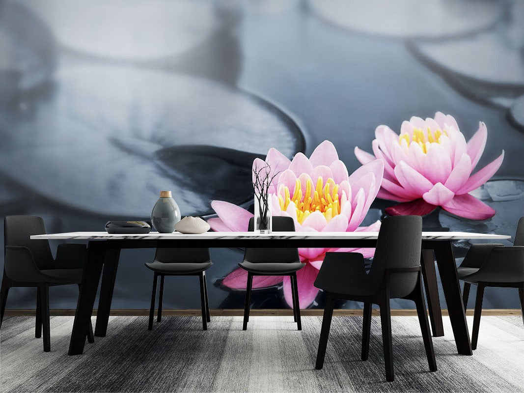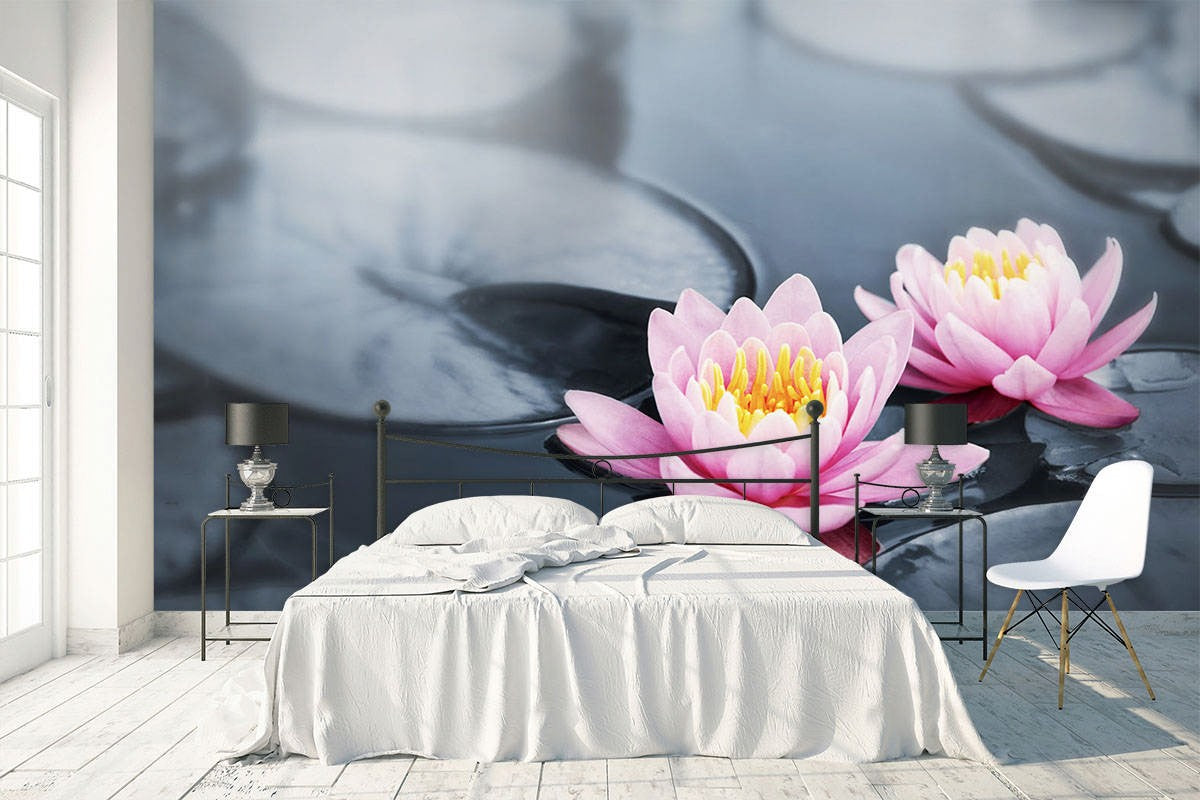 Lotus Floral Dutch Flowers Blue Wallpaper Mural,Self-Adhesive Peel And Stick 3D Wall Decal,Designer Bedroom Wall Decor