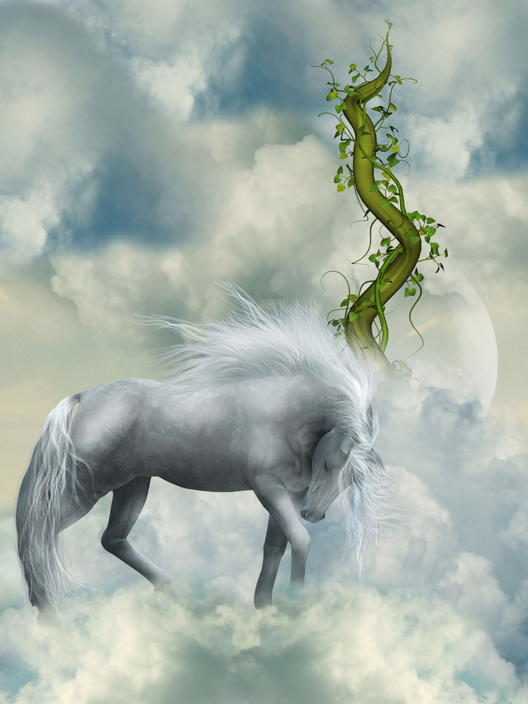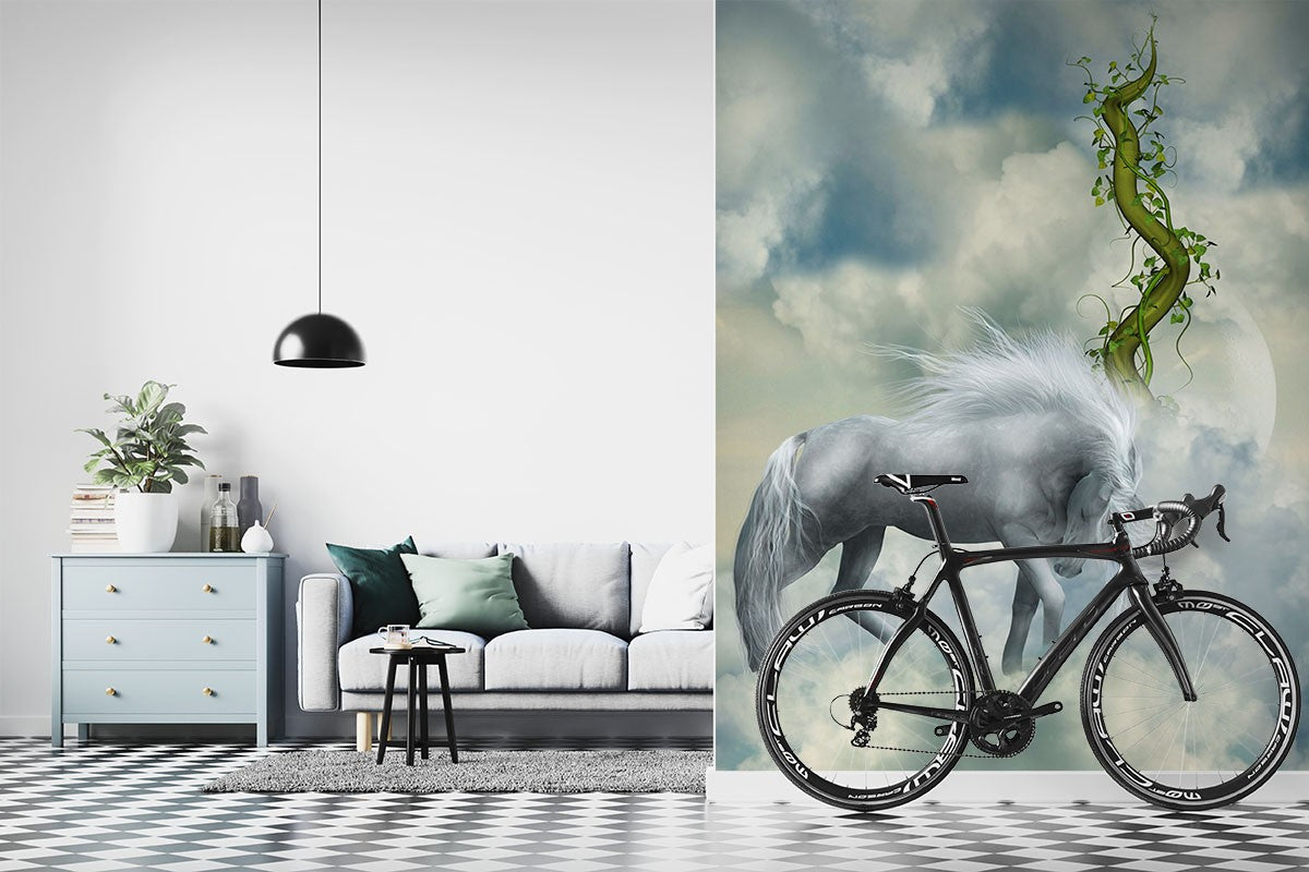 White Horse Clouds Animals Fantasy Animals Gray Wallpaper Mural,Self-Adhesive Peel And Stick 3D Wall Art,Removable Australian Company Wall Decor