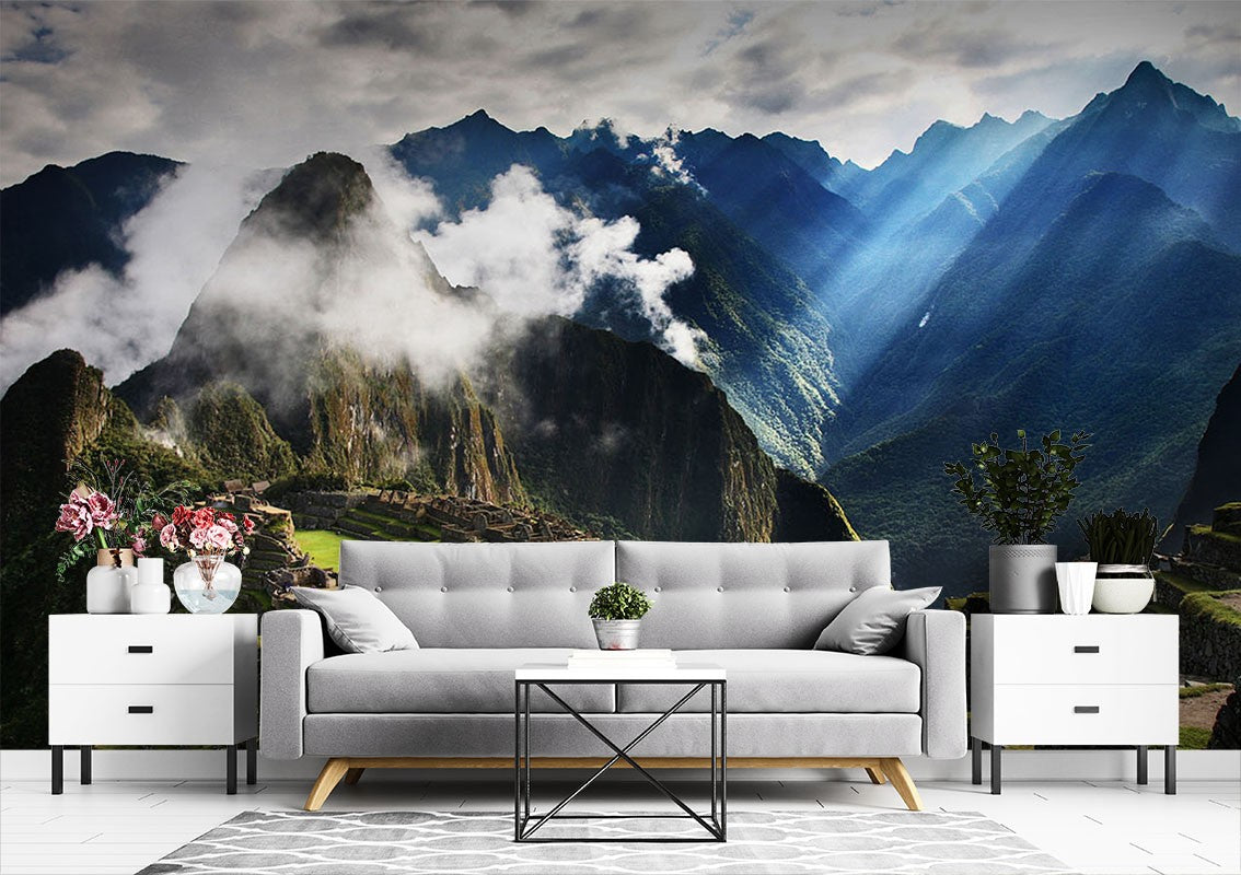 Machu Picchu City Landmarks Green Wallpaper Mural,Self-Adhesive Peel And Stick 3D Wall Mural,Australian Company Bedroom Wall Decor