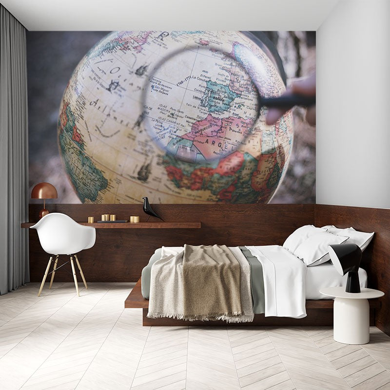 Magnifying Glass World Map Brown Wallpaper Mural,Self-Adhesive Peel And Stick 3D Wall Decor,Australian Company Bedroom Wall Decor
