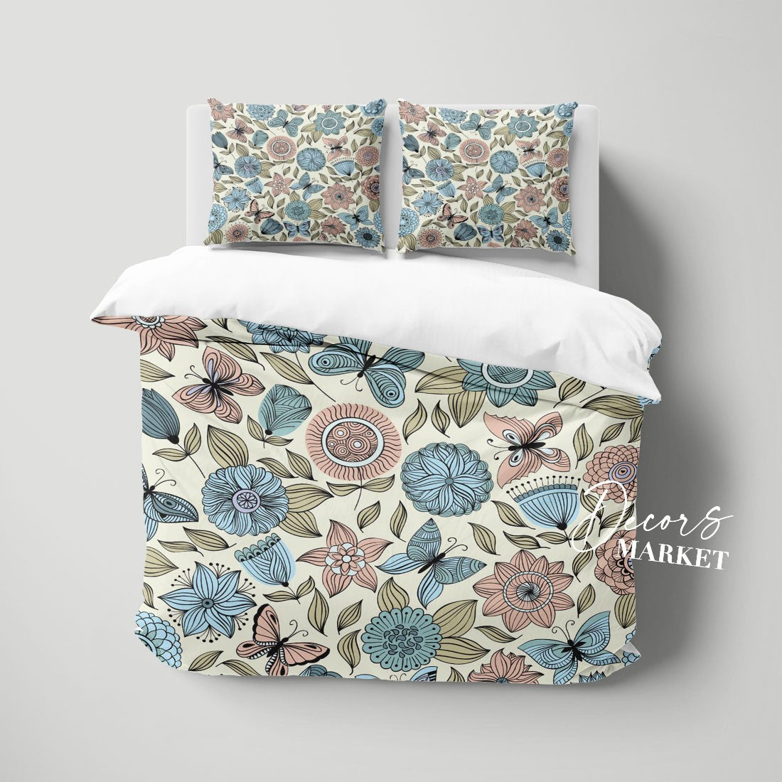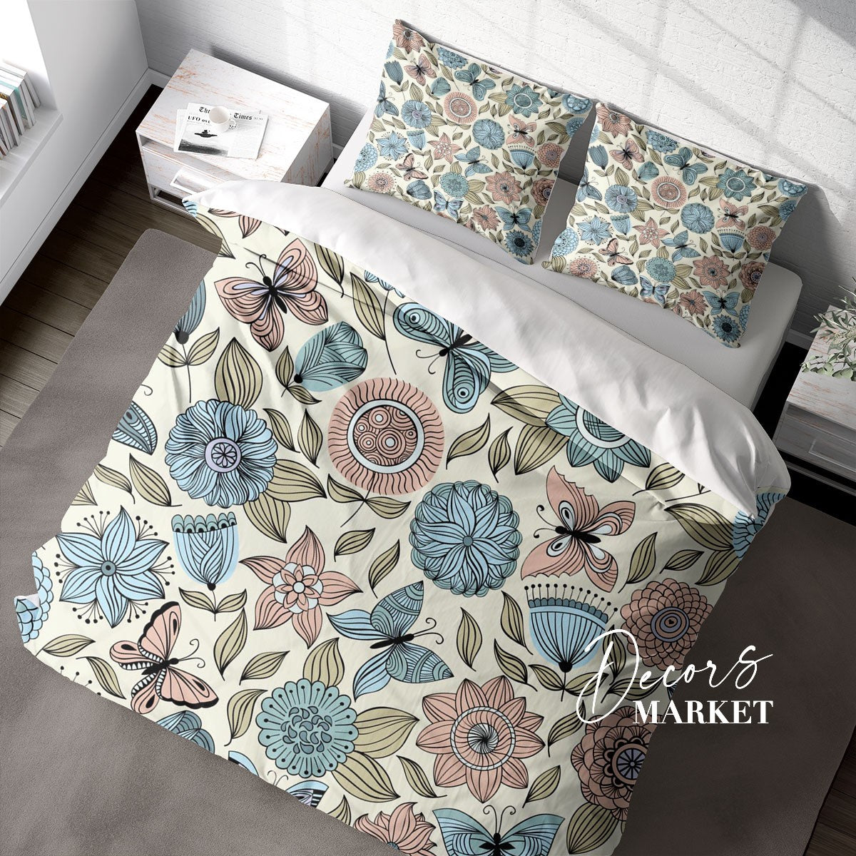 Mandala Butterfly Duvet Cover Set w Pillowcases, Colorful Floral Flowers 3D Quilt Cover, 3pc Single Double Queen King Size Doona Cover
