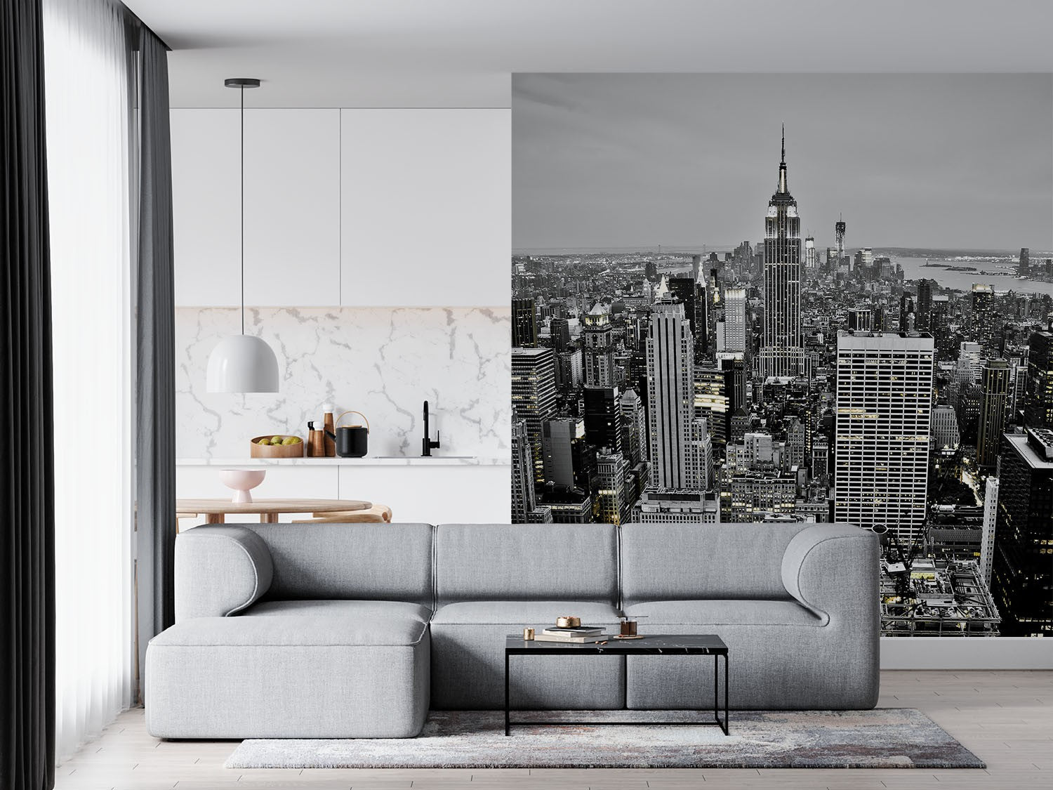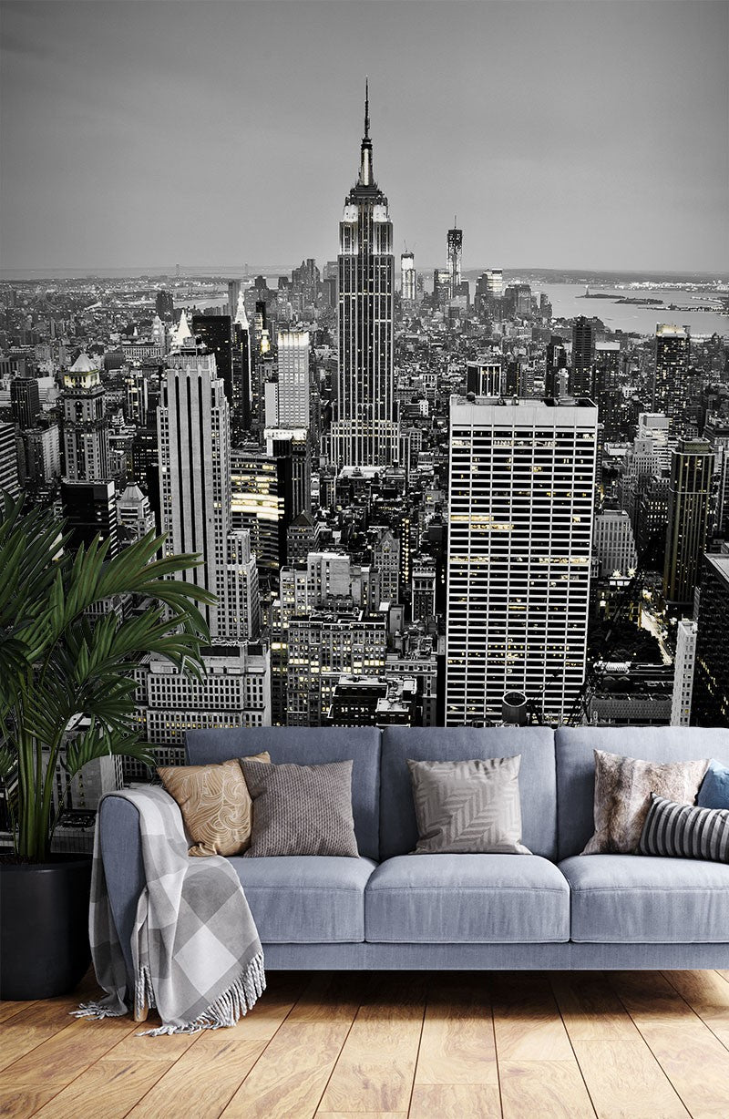 Manhattan Skyscrapers City Landmarks Black And White Wallpaper Mural