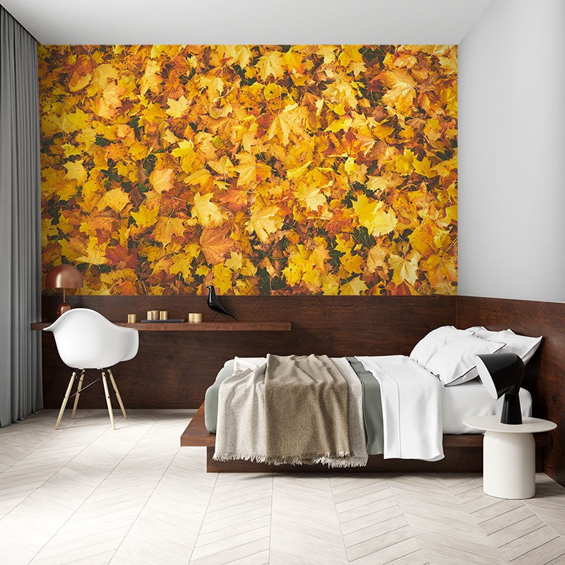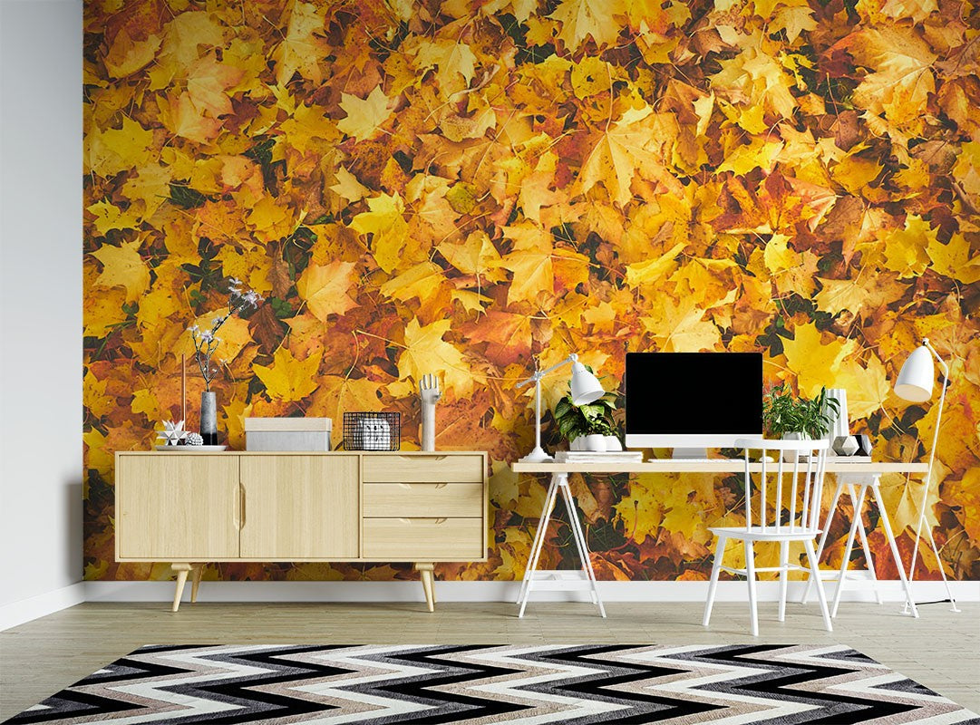 Maple Leaf Floral Leaves Orange Wallpaper Mural,Self-Adhesive Peel And Stick 3D Wall Decal,Designer Removable Wall Decor