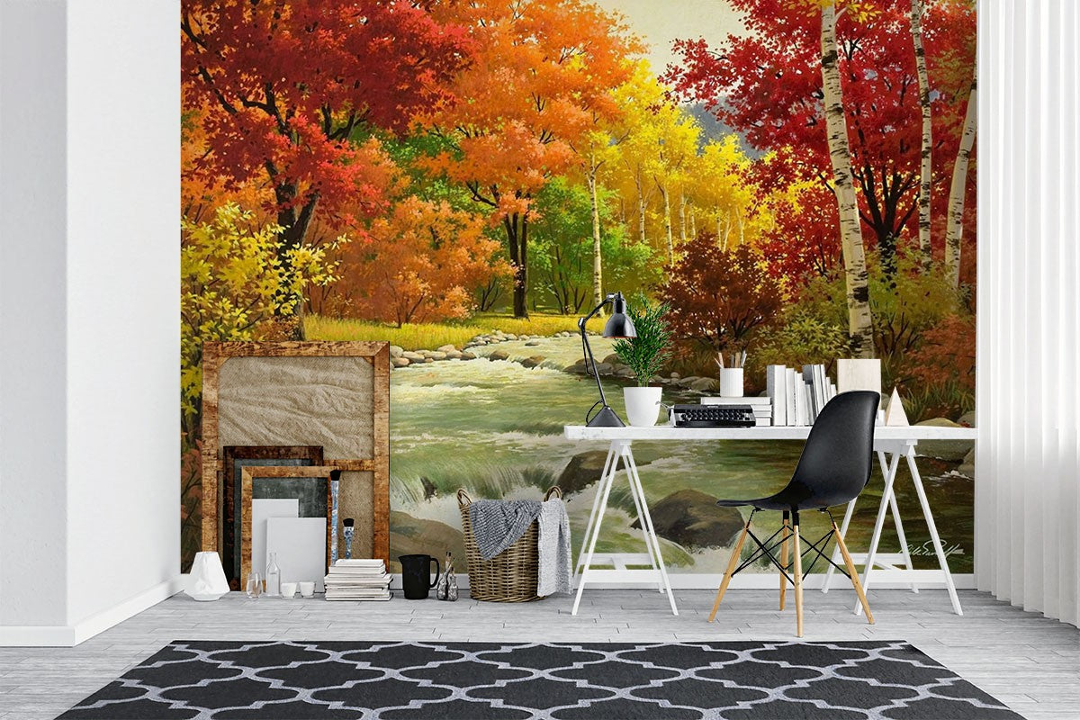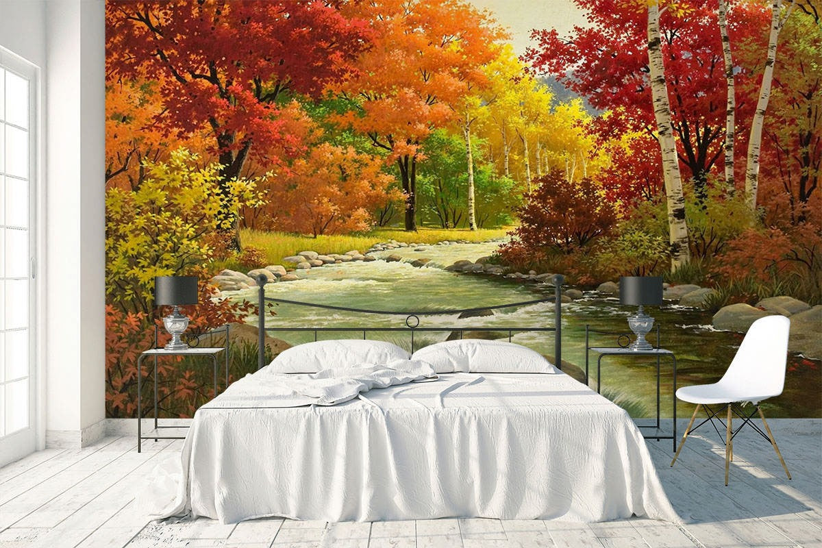 Maple Leaf Forest Seasons Red Wallpaper Mural,Self-Adhesive Peel And Stick 3D Wall Paper,Removable Designer Wall Decor