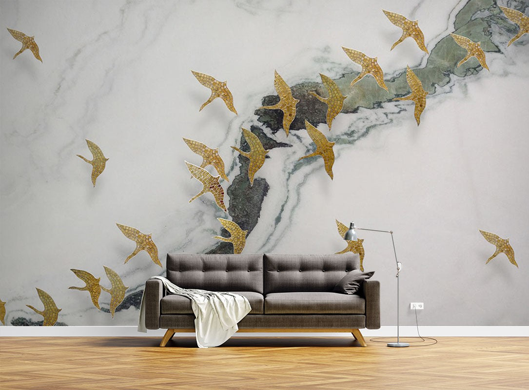 Marble Birds Texture White Wallpaper Mural,Self-Adhesive Peel And Stick 3D Wall Paper,Australian Company Bedroom Wall Decor