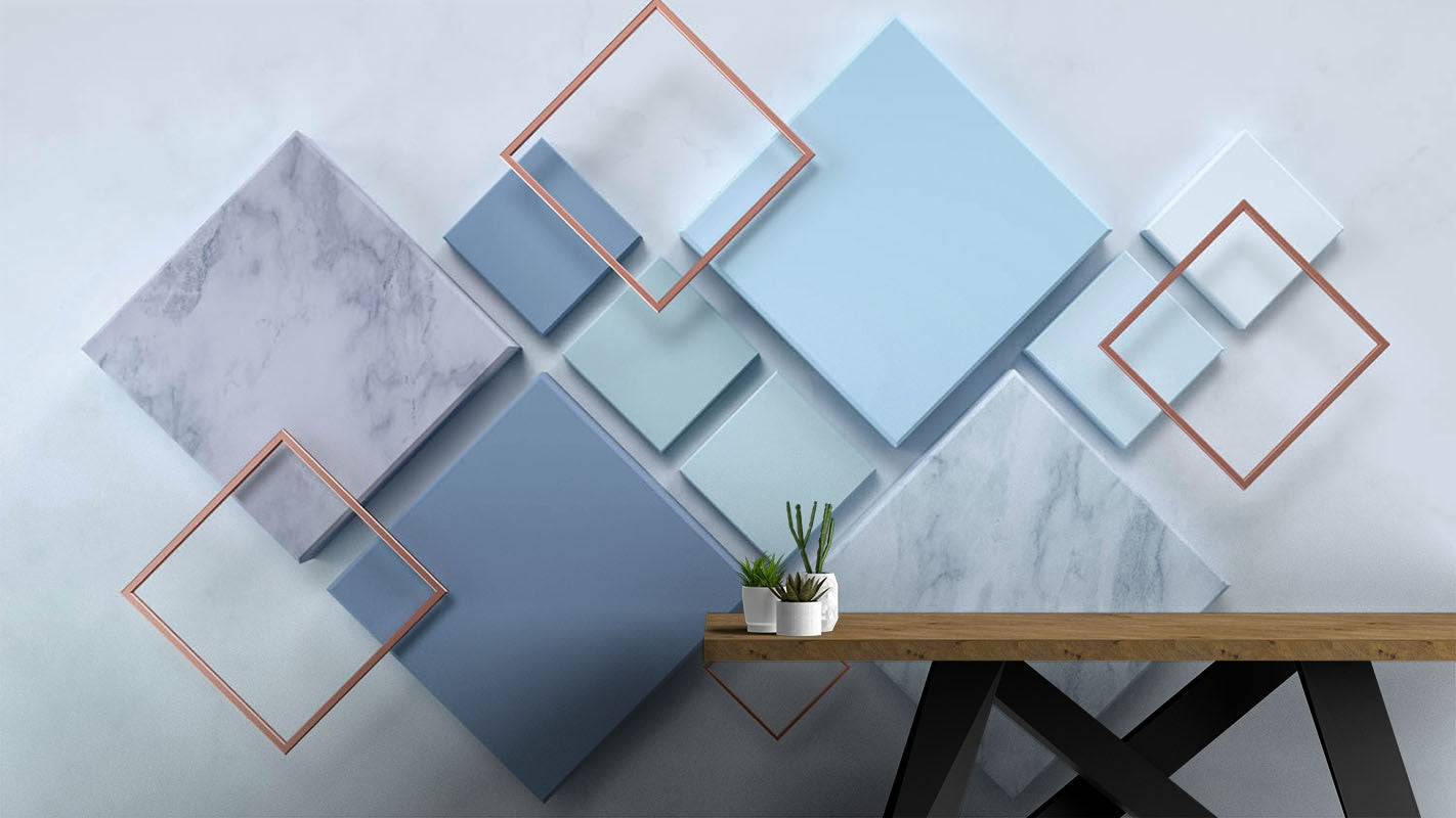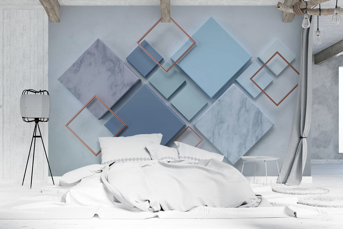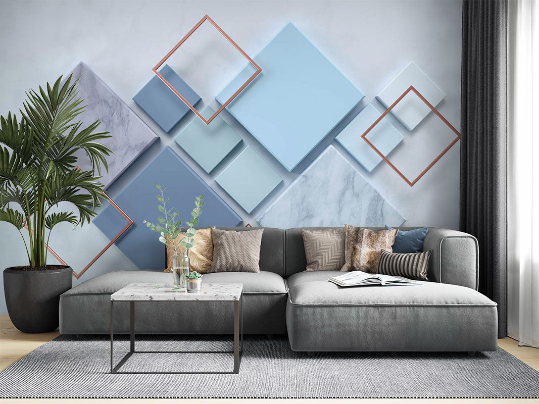 Marble Squares Texture Surfaces Blue Wallpaper Mural