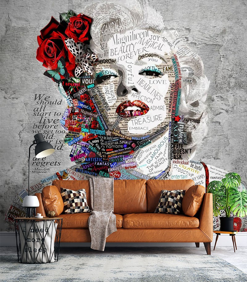 Marilyn Monroe Art 3D Gray Wallpaper Mural,Self-Adhesive Peel And Stick 3D Wall Decal,Bedroom Designer Wall Decor