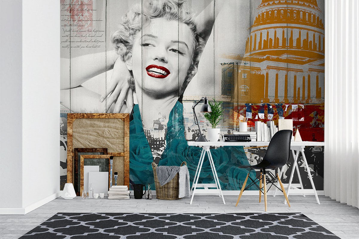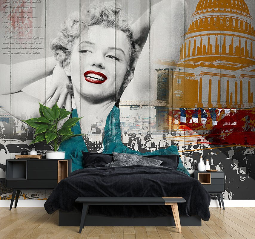 Marilyn Monroe Art Pop Art Blue Wallpaper Mural,Self-Adhesive Peel And Stick 3D Wall Paper,Designer Removable Wall Decor