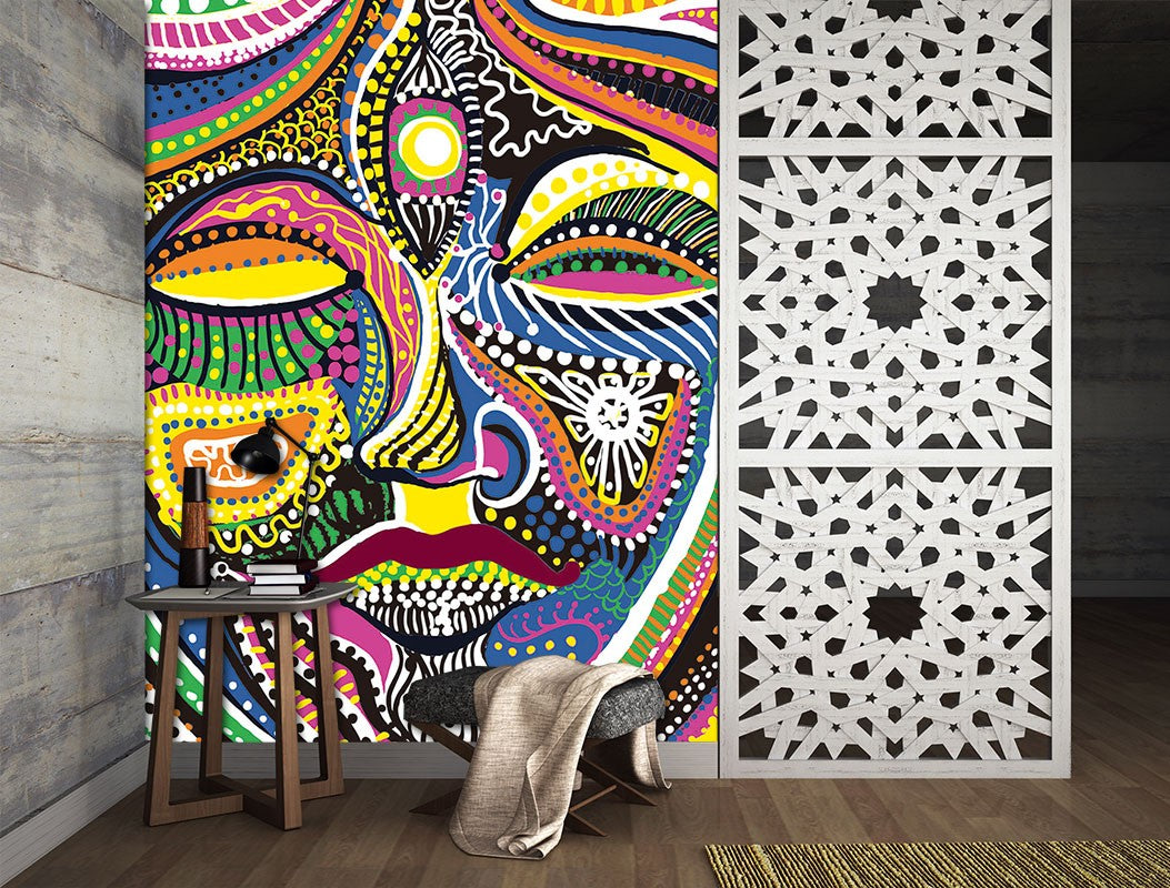 Mask Decoration Art Traditional Multicolour Wallpaper Mural,Self-Adhesive Peel And Stick 3D Wall Decal,Australian Company Wall Decor