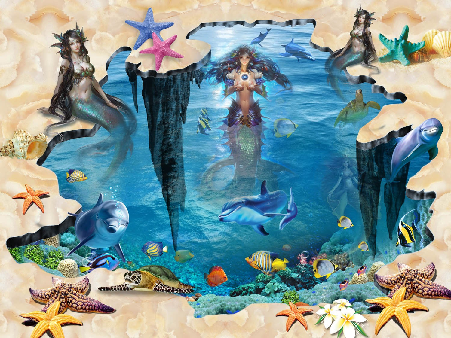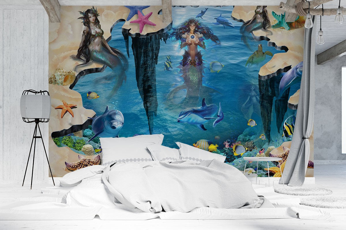 Mermaid Art Fantasy Blue Wallpaper Mural