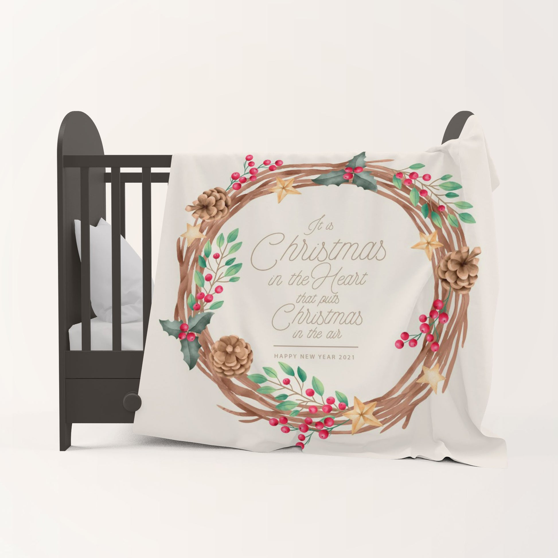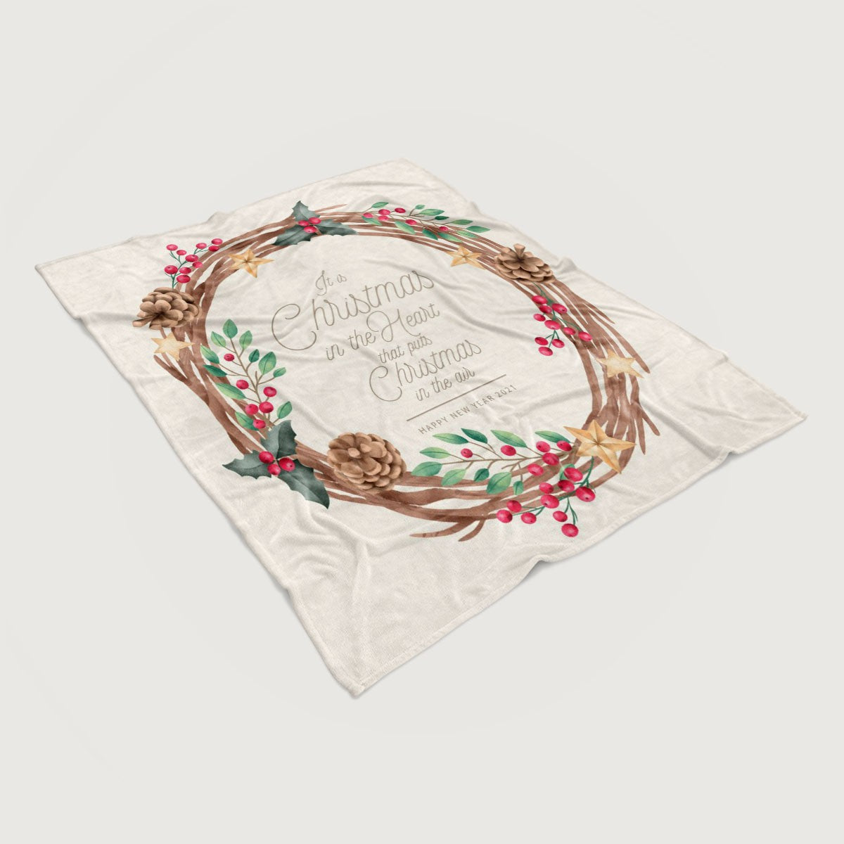 Merry Christmas Gift Floral Flowers Brown Personalized Throw Blanket Custom Fleece Sherpa Throw